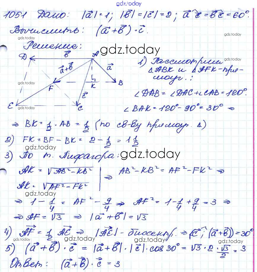 Ответы к Решение. Задачи 1051 Учебнику по Геометрии для 7-9 класса Атанасян, Бутузов Просвещение 2010