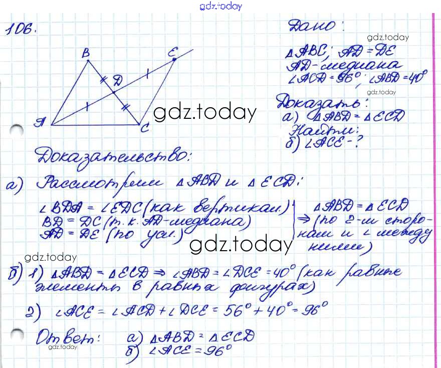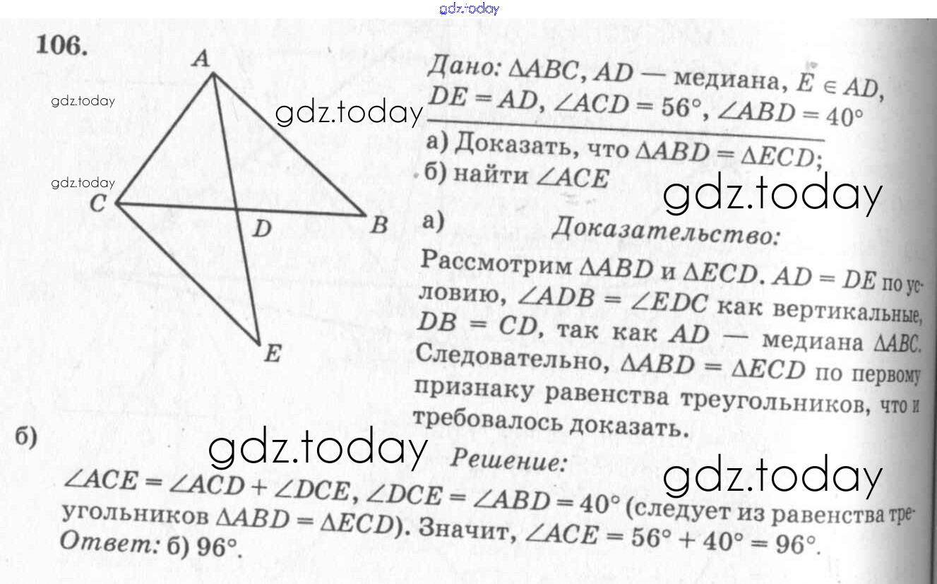 Ответы к Решение. Задачи 106 Учебнику по Геометрии для 7-9 класса Атанасян, Бутузов Просвещение 2010