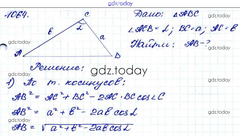На страницах сайта gdz.today вы найдете учебный и вспомогательный материал, направленный на улучшения знаний школьной программы. ГДЗ - онлайн мир знаний Решение. Задачи 1064 Учебнику по Геометрии для 7-9 класса Атанасян, Бутузов Просвещение 2010