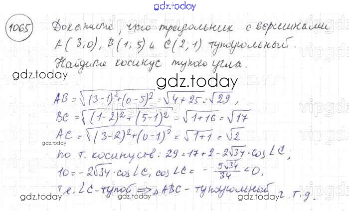 Ответы к Решение. Задачи 1065 Учебнику по Геометрии для 7-9 класса Атанасян, Бутузов Просвещение 2010