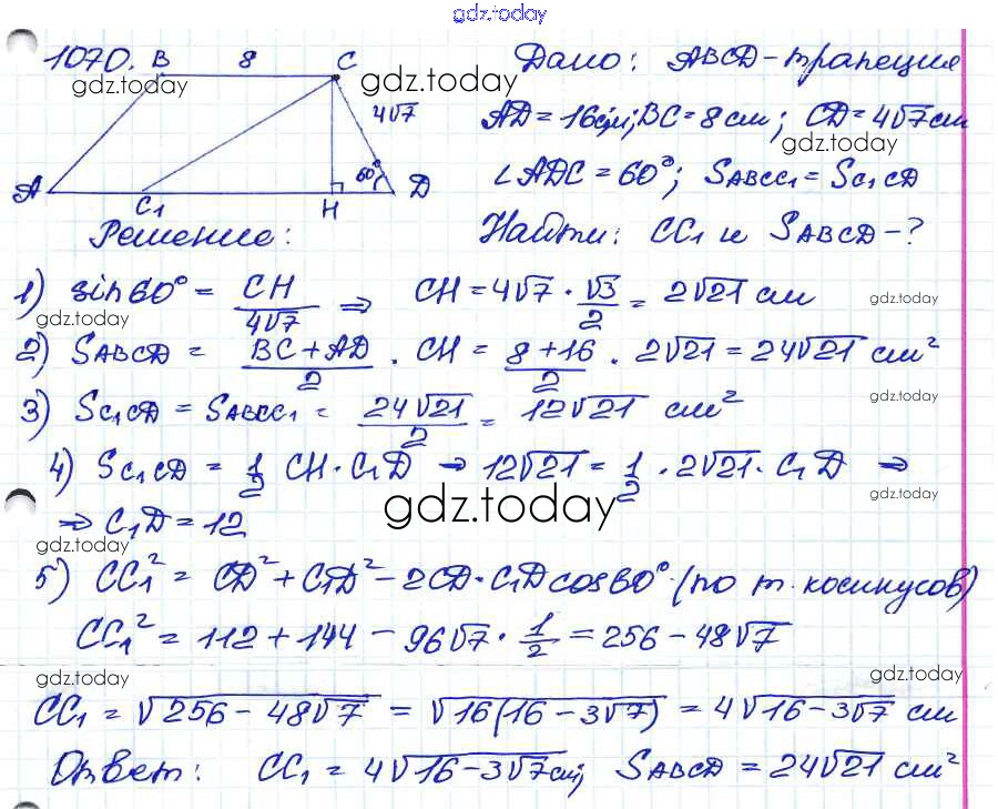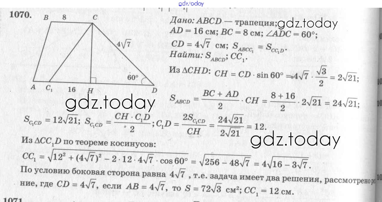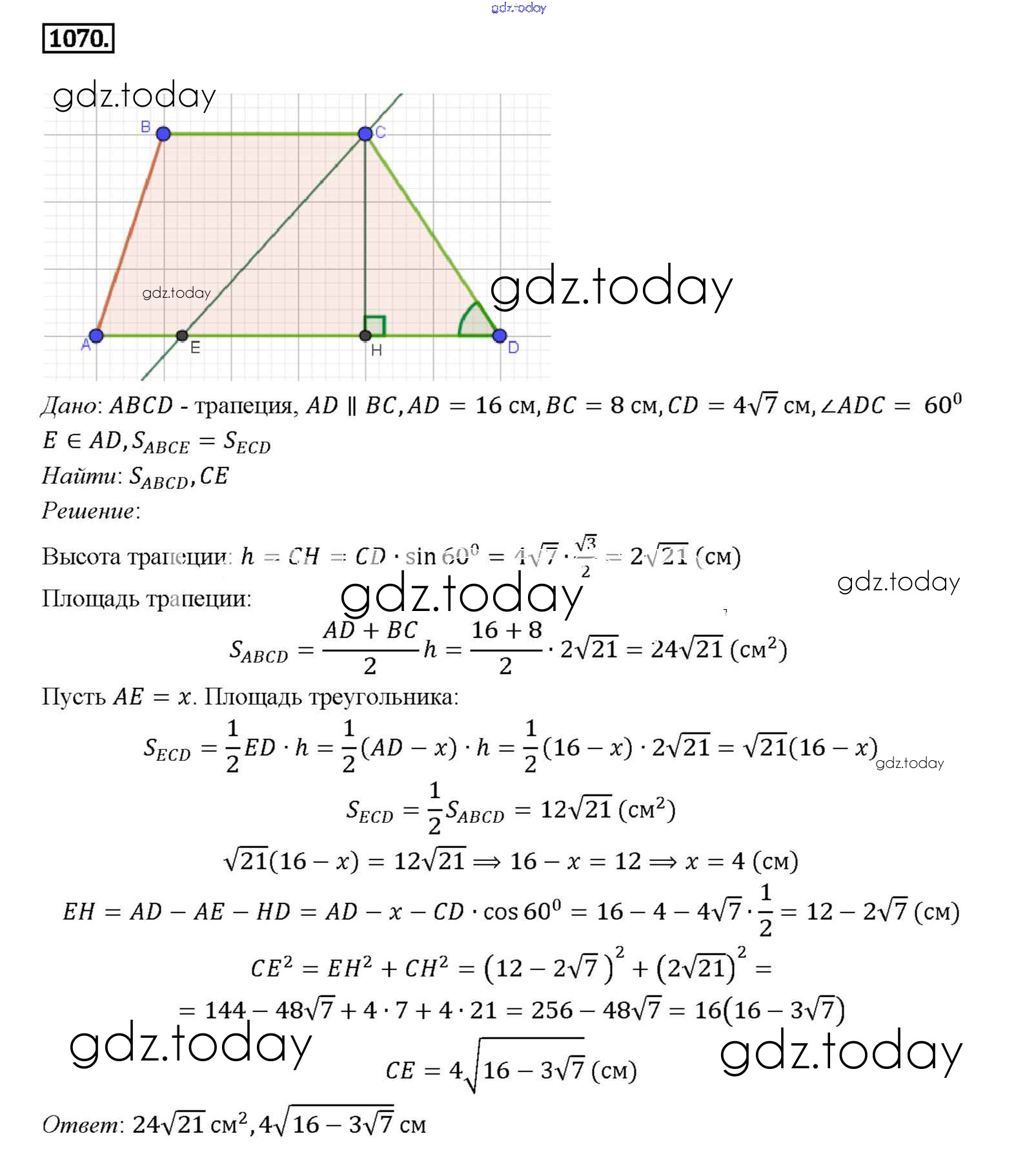 На страницах сайта gdz.today вы найдете учебный и вспомогательный материал, направленный на улучшения знаний школьной программы. ГДЗ - онлайн мир знаний Решение. Задачи 1070 Учебнику по Геометрии для 7-9 класса Атанасян, Бутузов Просвещение 2010