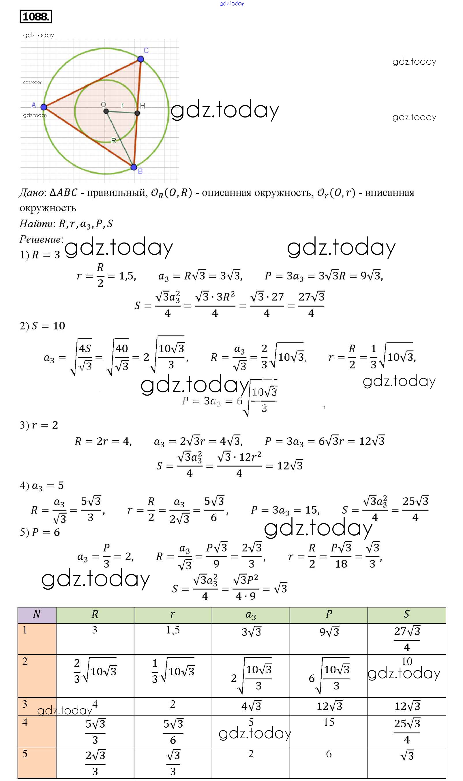 Ответы к Решение. Задачи 1088 Учебнику по Геометрии для 7-9 класса Атанасян, Бутузов Просвещение 2010