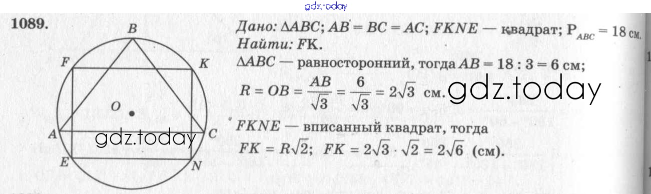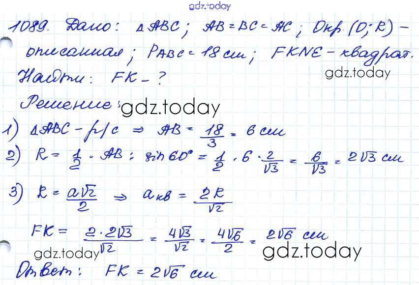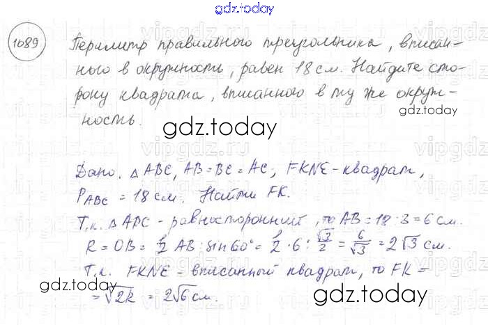 Ответы к Решение. Задачи 1089 Учебнику по Геометрии для 7-9 класса Атанасян, Бутузов Просвещение 2010