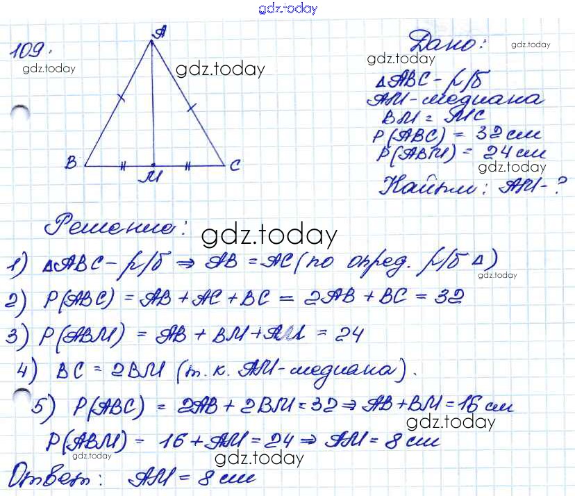 Ответы к Решение. Задачи 109 Учебнику по Геометрии для 7-9 класса Атанасян, Бутузов Просвещение 2010