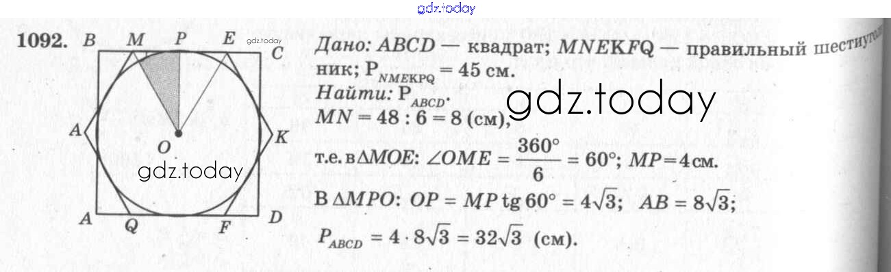 Ответы к Решение. Задачи 1092 Учебнику по Геометрии для 7-9 класса Атанасян, Бутузов Просвещение 2010