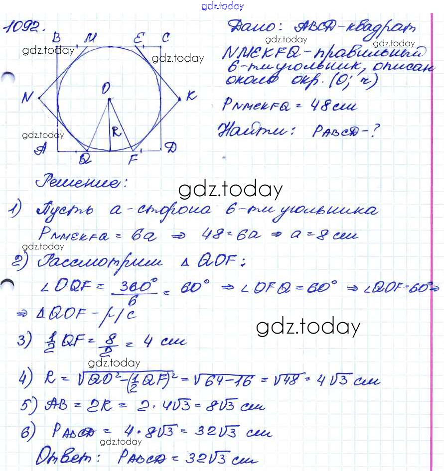 На страницах сайта gdz.today вы найдете учебный и вспомогательный материал, направленный на улучшения знаний школьной программы. ГДЗ - онлайн мир знаний Решение. Задачи 1092 Учебнику по Геометрии для 7-9 класса Атанасян, Бутузов Просвещение 2010