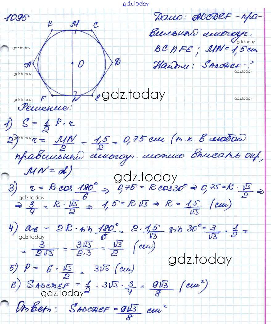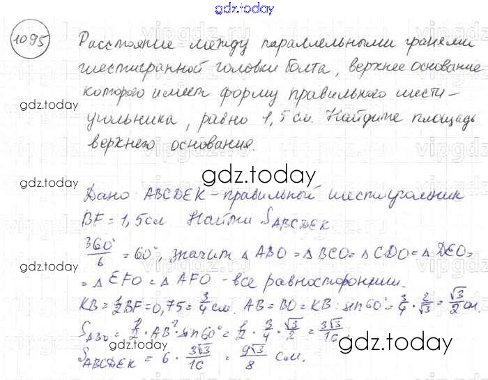 Ответы к Решение. Задачи 1095 Учебнику по Геометрии для 7-9 класса Атанасян, Бутузов Просвещение 2010