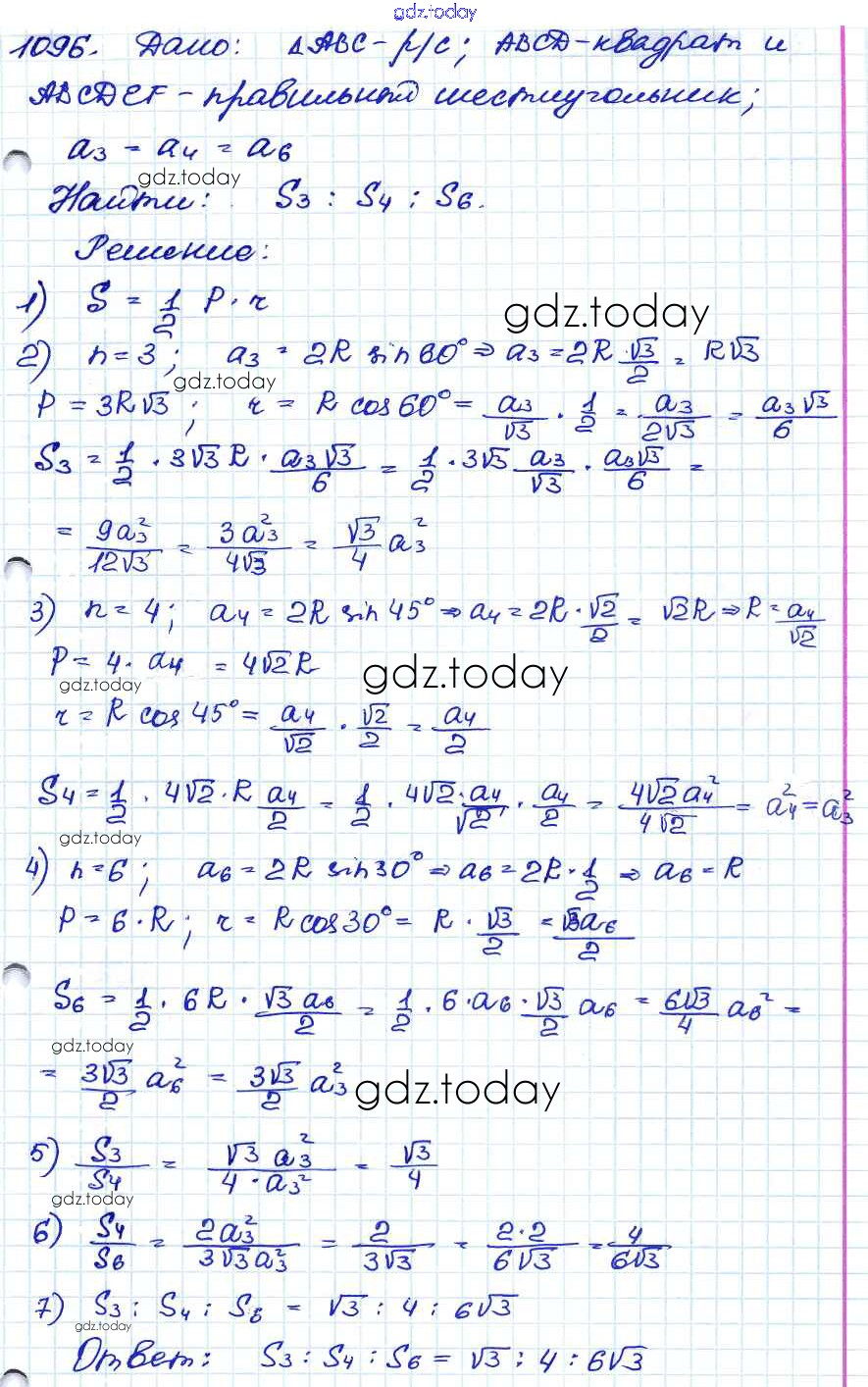Ответы к Решение. Задачи 1096 Учебнику по Геометрии для 7-9 класса Атанасян, Бутузов Просвещение 2010