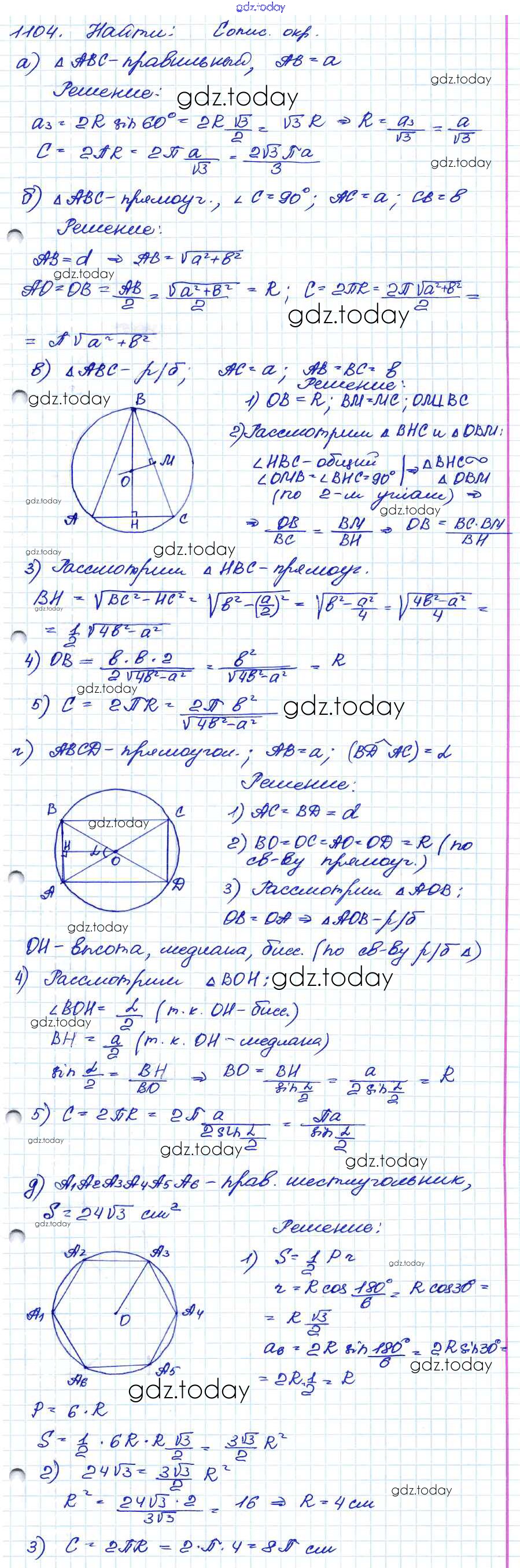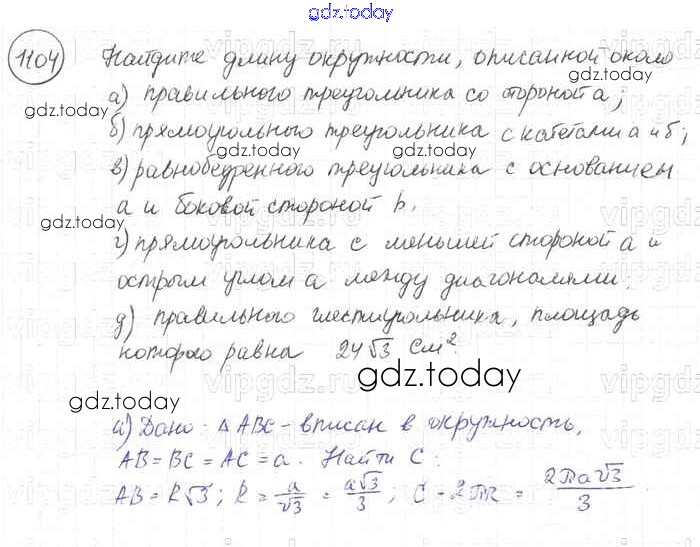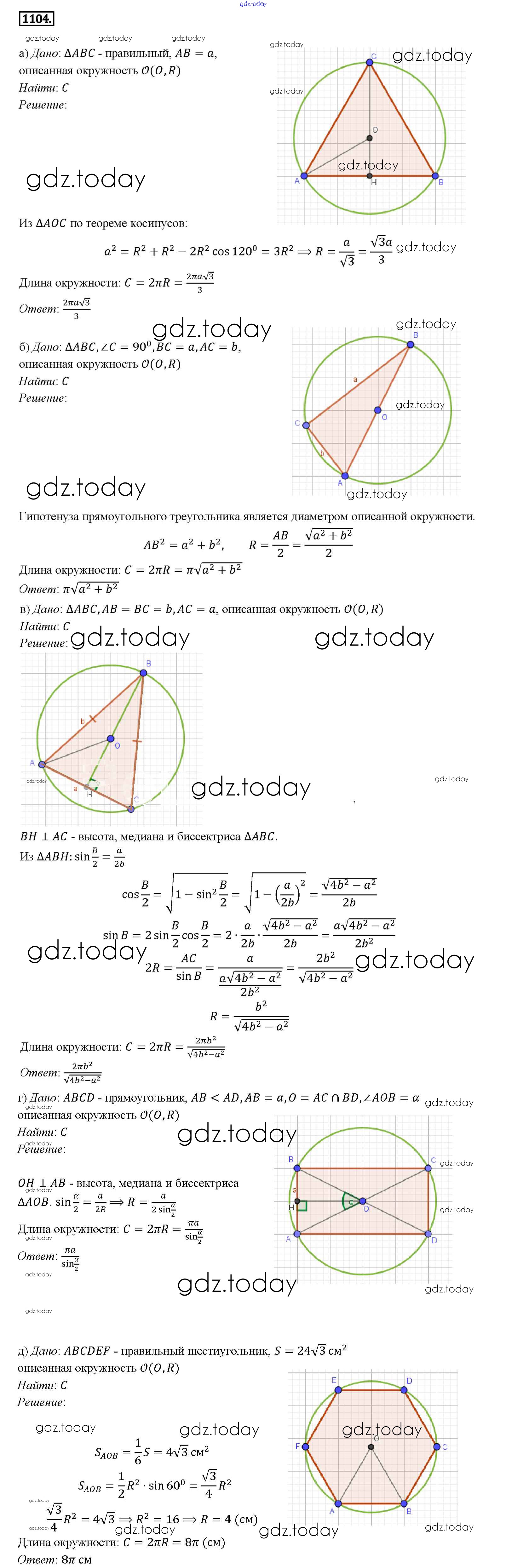 Ответы к Решение. Задачи 1104 Учебнику по Геометрии для 7-9 класса Атанасян, Бутузов Просвещение 2010