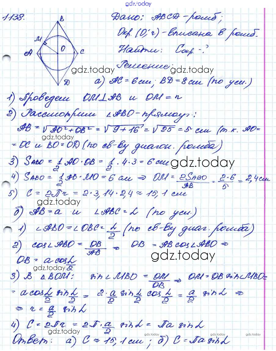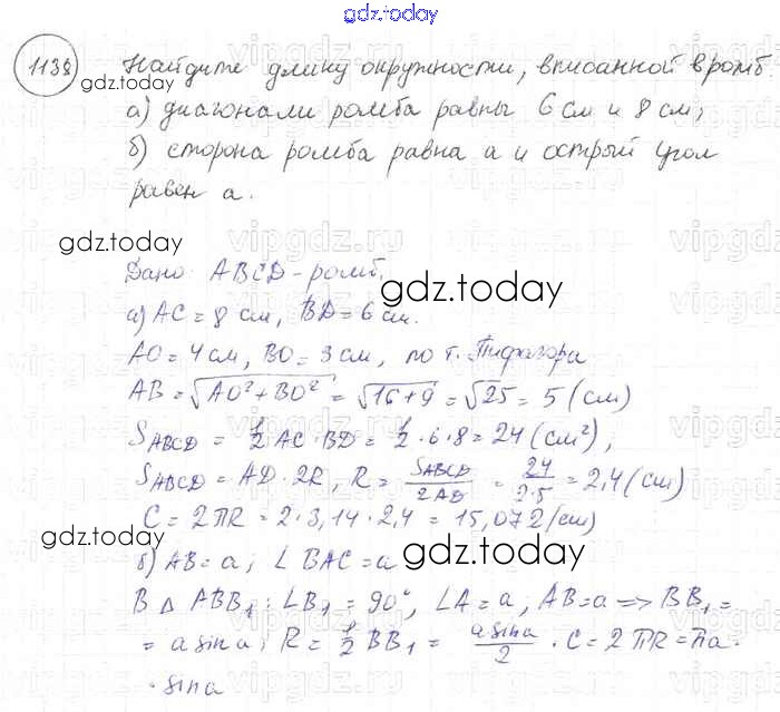 Ответы к Решение. Задачи 1138 Учебнику по Геометрии для 7-9 класса Атанасян, Бутузов Просвещение 2010