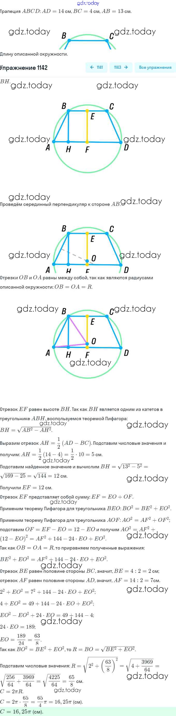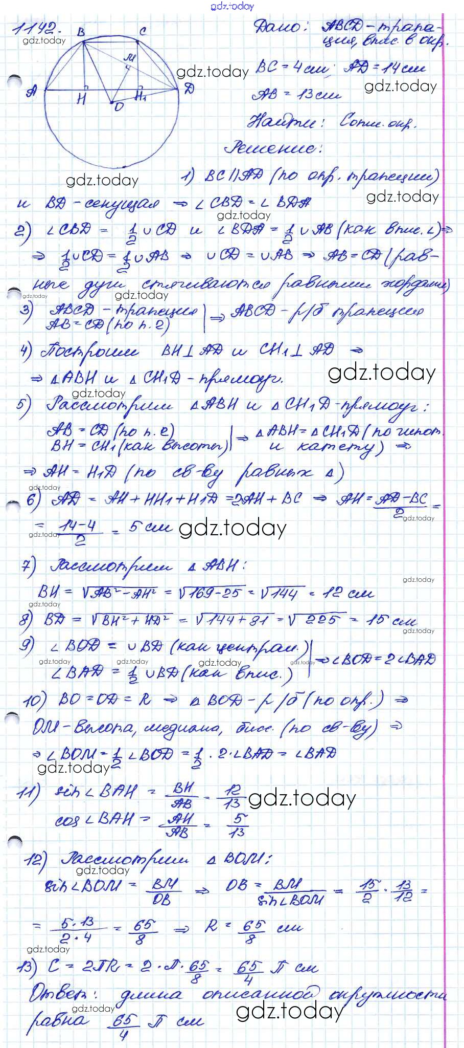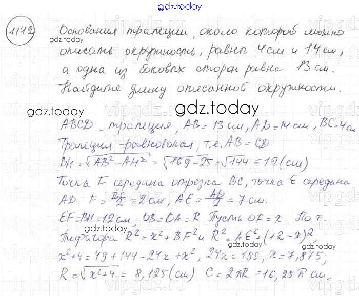 Ответы к Решение. Задачи 1142 Учебнику по Геометрии для 7-9 класса Атанасян, Бутузов Просвещение 2010
