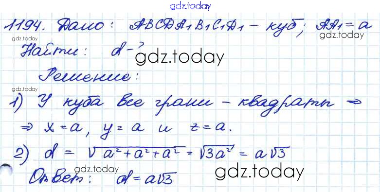 На страницах сайта gdz.today вы найдете учебный и вспомогательный материал, направленный на улучшения знаний школьной программы. ГДЗ - онлайн мир знаний Решение. Задачи 1194 Учебнику по Геометрии для 7-9 класса Атанасян, Бутузов Просвещение 2010