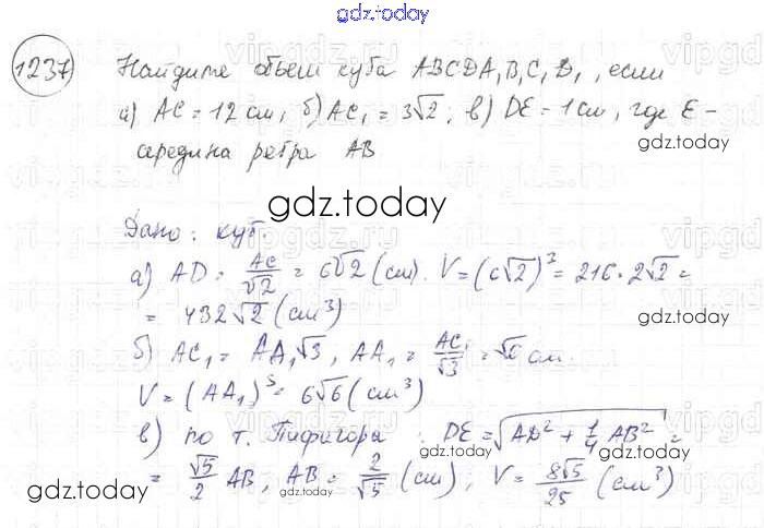 Ответы к Решение. Задачи 1237 Учебнику по Геометрии для 7-9 класса Атанасян, Бутузов Просвещение 2010