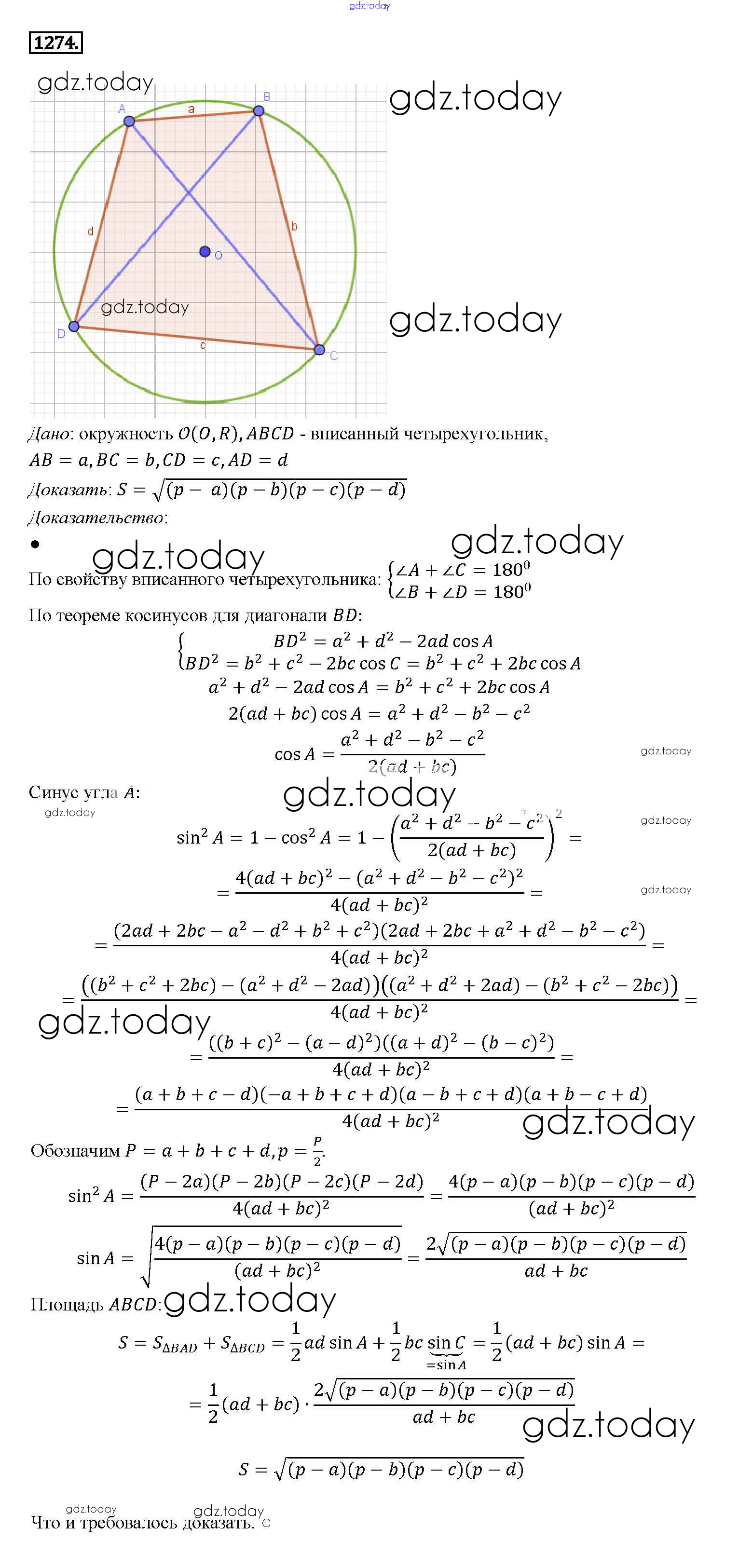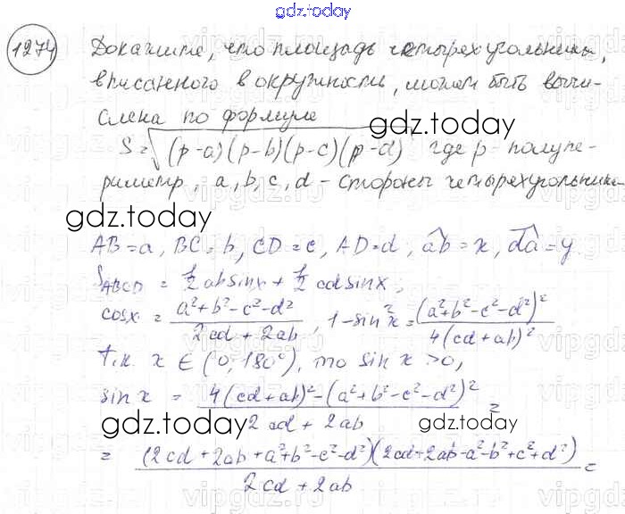 Ответы к Решение. Задачи 1274 Учебнику по Геометрии для 7-9 класса Атанасян, Бутузов Просвещение 2010