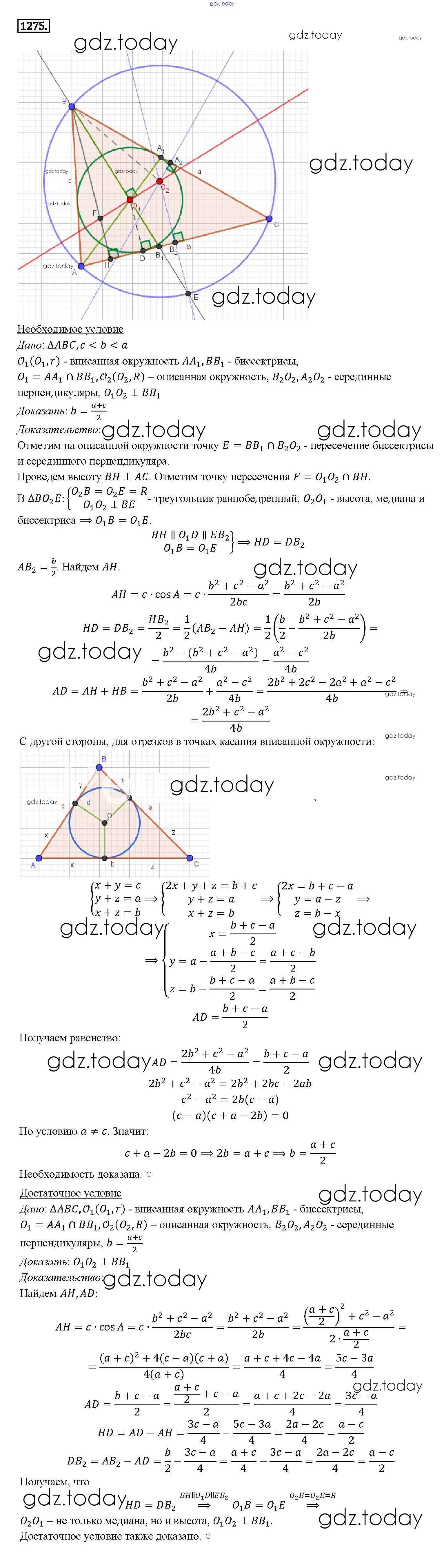 На страницах сайта gdz.today вы найдете учебный и вспомогательный материал, направленный на улучшения знаний школьной программы. ГДЗ - онлайн мир знаний Решение. Задачи 1275 Учебнику по Геометрии для 7-9 класса Атанасян, Бутузов Просвещение 2010