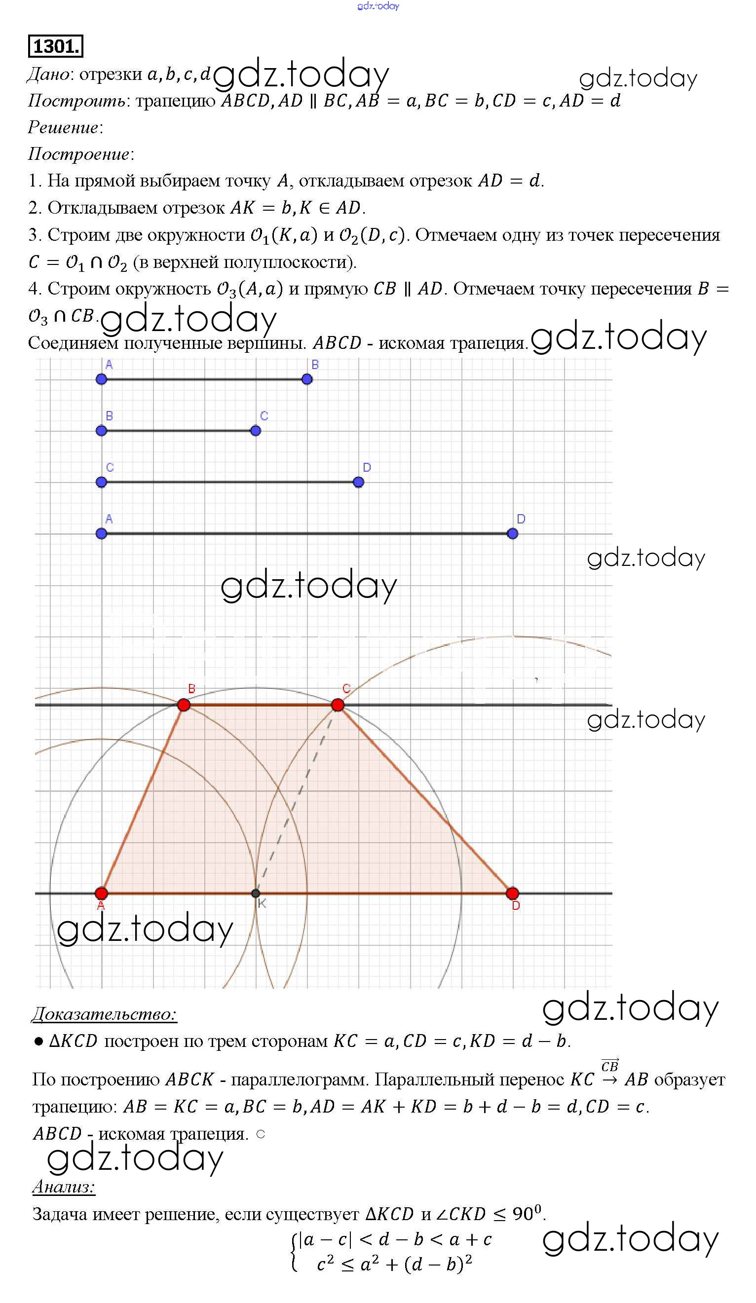 Ответы к Решение. Задачи 1301 Учебнику по Геометрии для 7-9 класса Атанасян, Бутузов Просвещение 2010