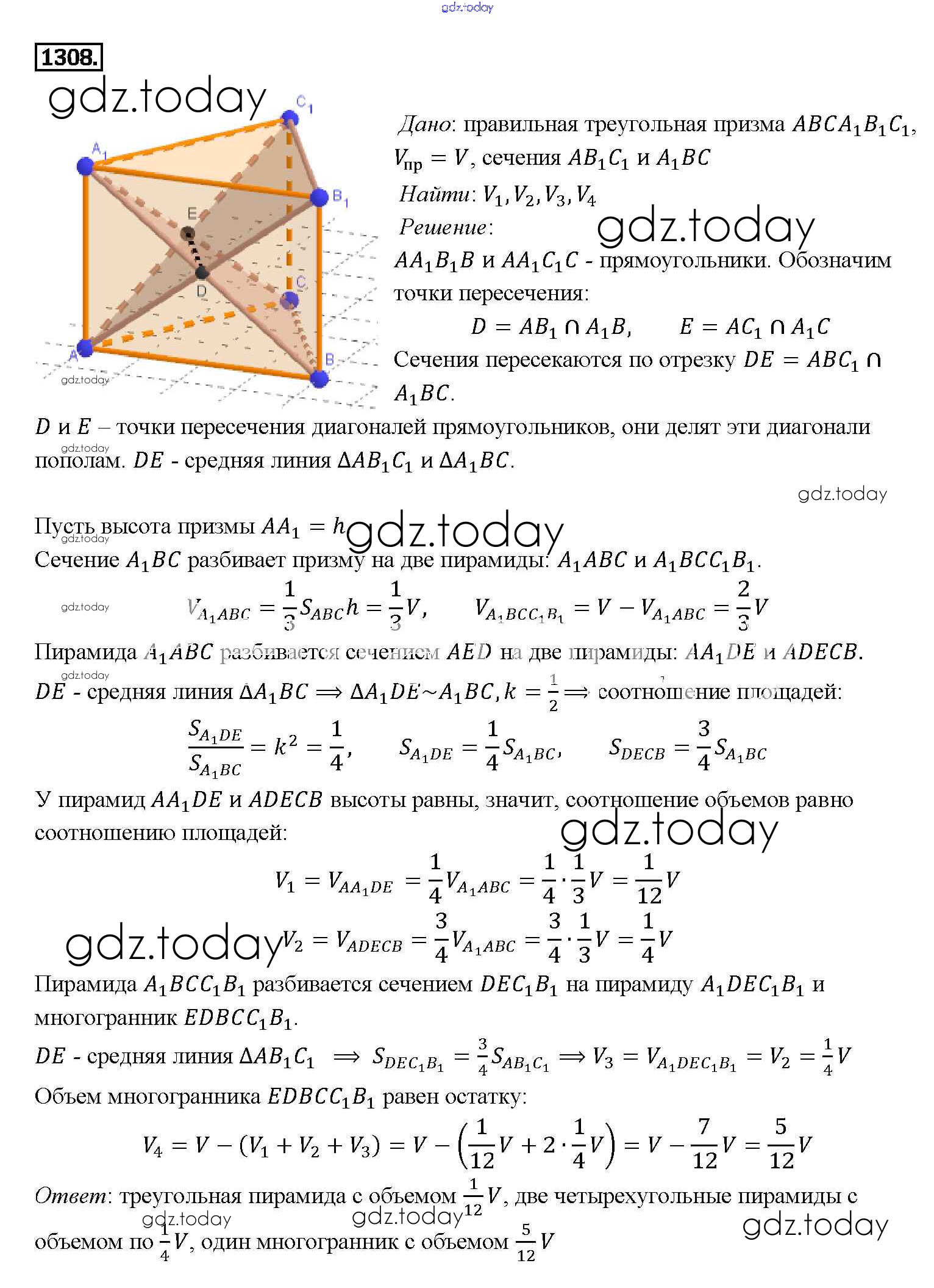Ответы к Решение. Задачи 1308 Учебнику по Геометрии для 7-9 класса Атанасян, Бутузов Просвещение 2010