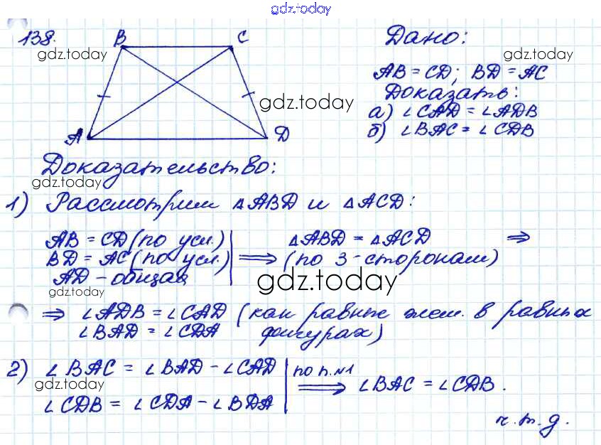 Ответы к Решение. Задачи 138 Учебнику по Геометрии для 7-9 класса Атанасян, Бутузов Просвещение 2010