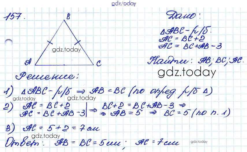 На страницах сайта gdz.today вы найдете учебный и вспомогательный материал, направленный на улучшения знаний школьной программы. ГДЗ - онлайн мир знаний Решение. Задачи 157 Учебнику по Геометрии для 7-9 класса Атанасян, Бутузов Просвещение 2010