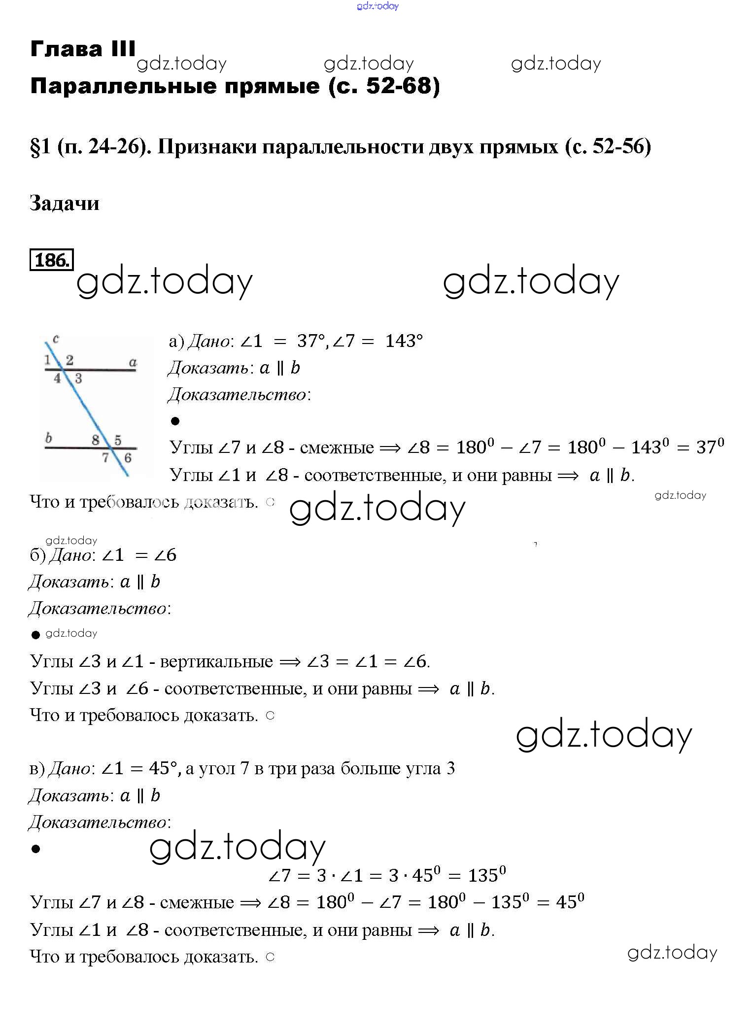 Ответы к Решение. Задачи 186 Учебнику по Геометрии для 7-9 класса Атанасян, Бутузов Просвещение 2010