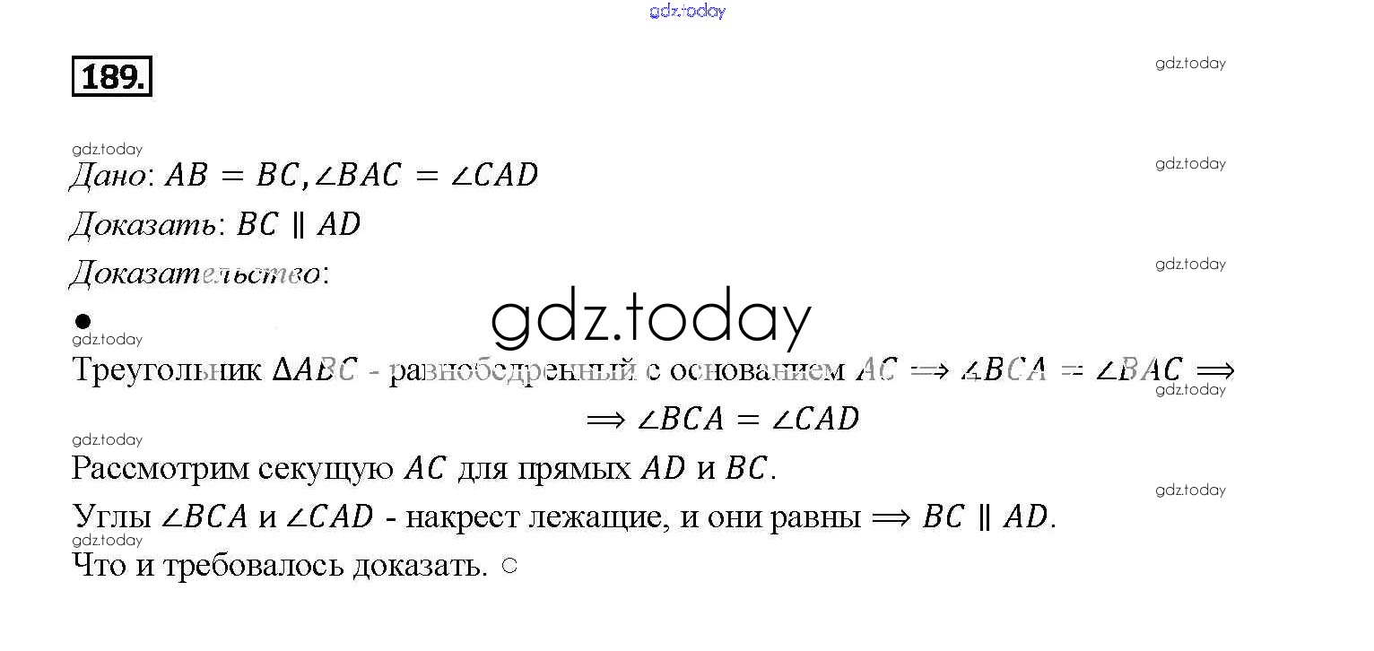 Ответы к Решение. Задачи 189 Учебнику по Геометрии для 7-9 класса Атанасян, Бутузов Просвещение 2010