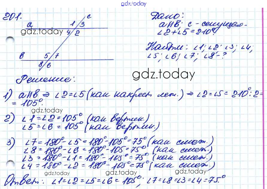 Ответы к Решение. Задачи 201 Учебнику по Геометрии для 7-9 класса Атанасян, Бутузов Просвещение 2010