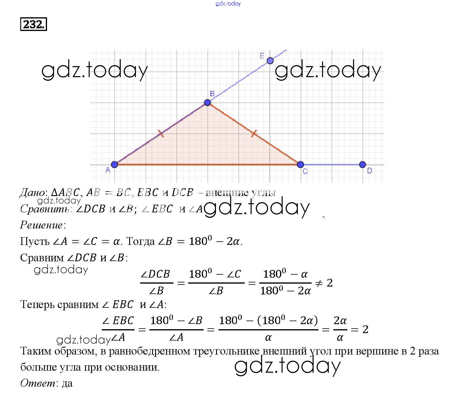 Ответы к Решение. Задачи 232 Учебнику по Геометрии для 7-9 класса Атанасян, Бутузов Просвещение 2010