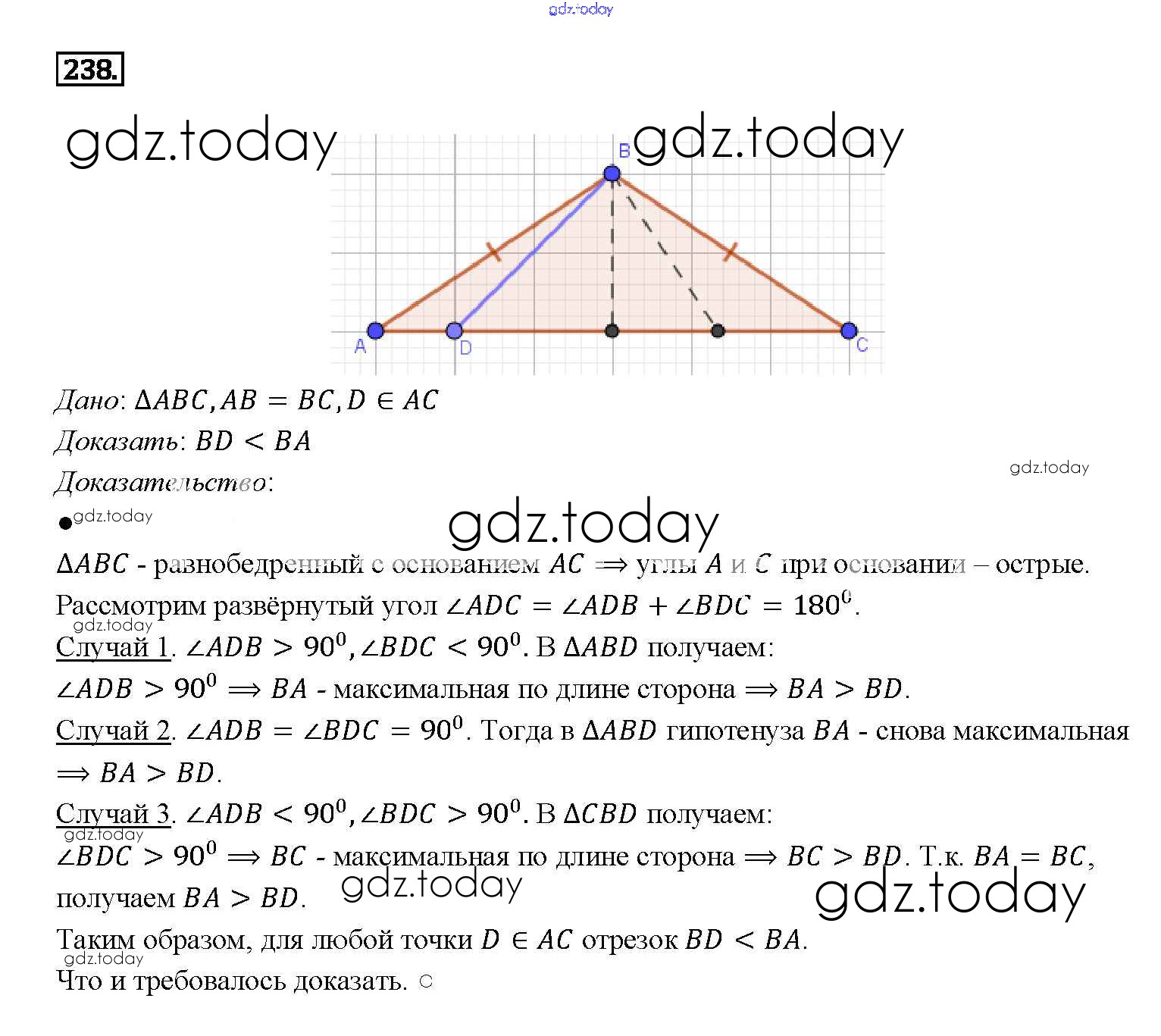 На страницах сайта gdz.today вы найдете учебный и вспомогательный материал, направленный на улучшения знаний школьной программы. ГДЗ - онлайн мир знаний Решение. Задачи 238 Учебнику по Геометрии для 7-9 класса Атанасян, Бутузов Просвещение 2010