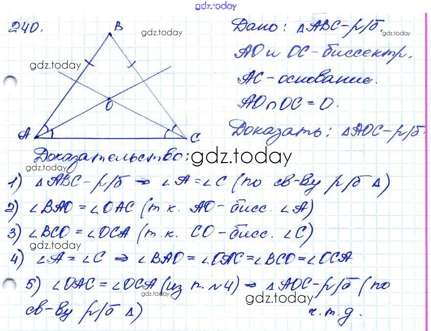 На страницах сайта gdz.today вы найдете учебный и вспомогательный материал, направленный на улучшения знаний школьной программы. ГДЗ - онлайн мир знаний Решение. Задачи 240 Учебнику по Геометрии для 7-9 класса Атанасян, Бутузов Просвещение 2010