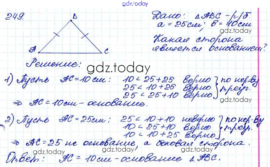 Ответы к Решение. Задачи 249 Учебнику по Геометрии для 7-9 класса Атанасян, Бутузов Просвещение 2010