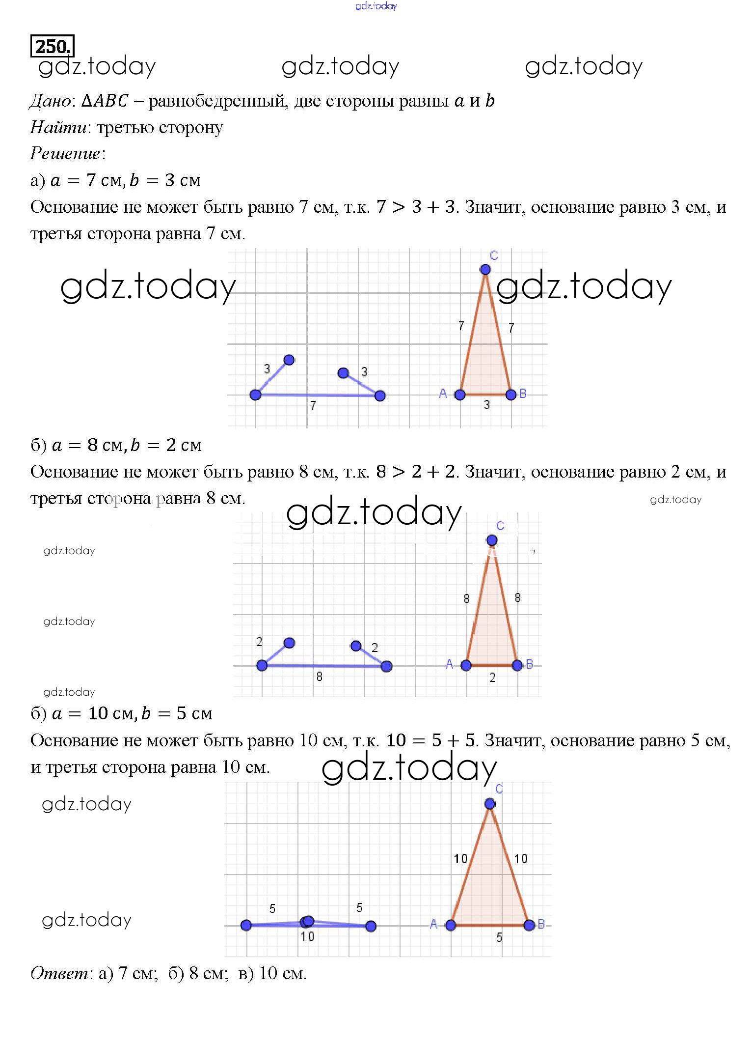 Ответы к Решение. Задачи 250 Учебнику по Геометрии для 7-9 класса Атанасян, Бутузов Просвещение 2010