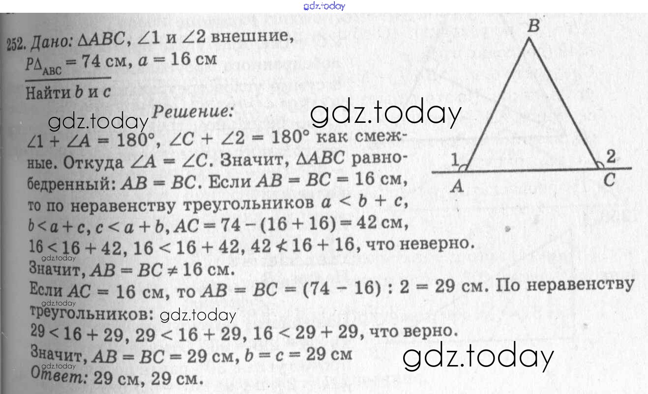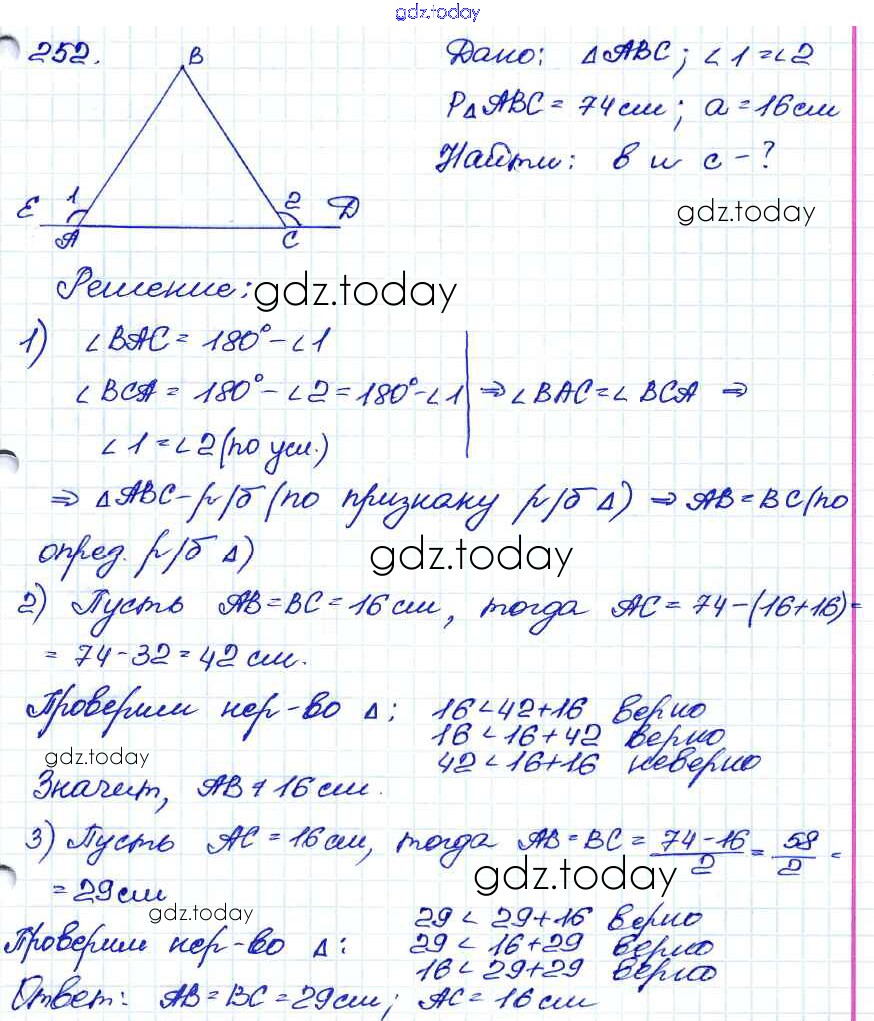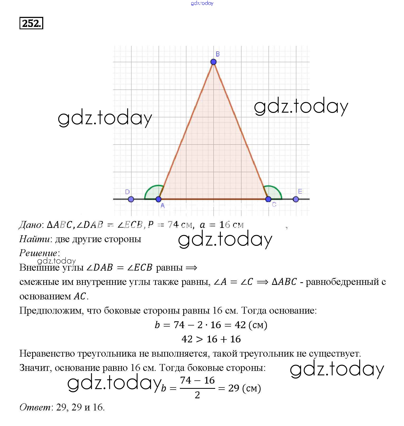 Ответы к Решение. Задачи 252 Учебнику по Геометрии для 7-9 класса Атанасян, Бутузов Просвещение 2010