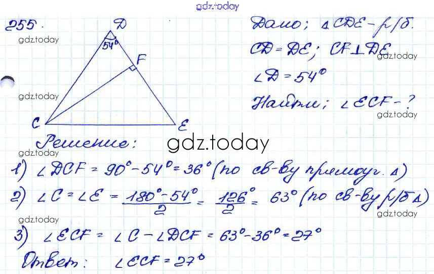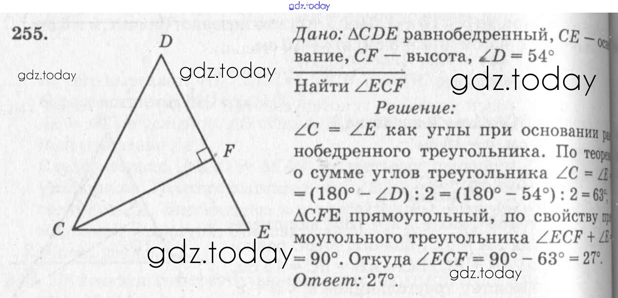Ответы к Решение. Задачи 255 Учебнику по Геометрии для 7-9 класса Атанасян, Бутузов Просвещение 2010