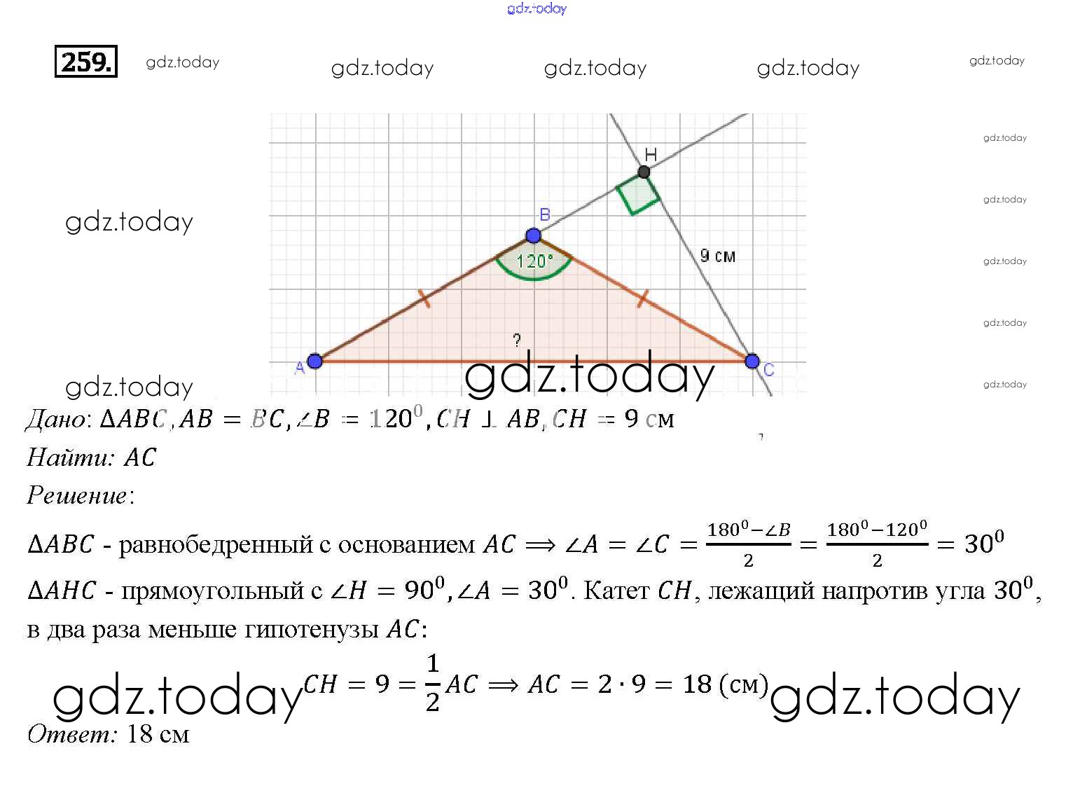 На страницах сайта gdz.today вы найдете учебный и вспомогательный материал, направленный на улучшения знаний школьной программы. ГДЗ - онлайн мир знаний Решение. Задачи 259 Учебнику по Геометрии для 7-9 класса Атанасян, Бутузов Просвещение 2010
