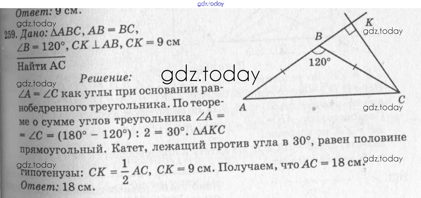 Ответы к Решение. Задачи 259 Учебнику по Геометрии для 7-9 класса Атанасян, Бутузов Просвещение 2010