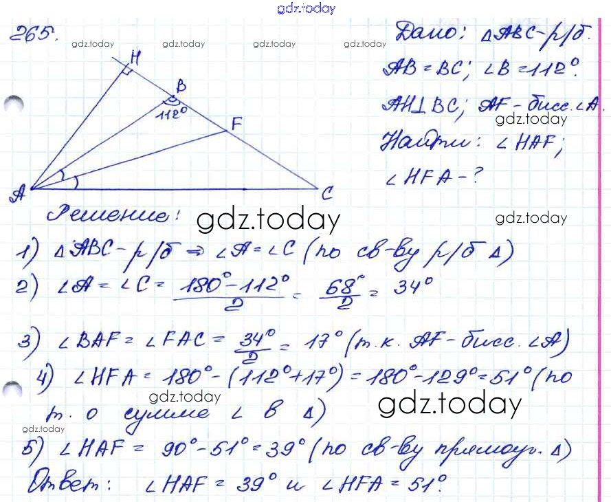 Ответы к Решение. Задачи 265 Учебнику по Геометрии для 7-9 класса Атанасян, Бутузов Просвещение 2010