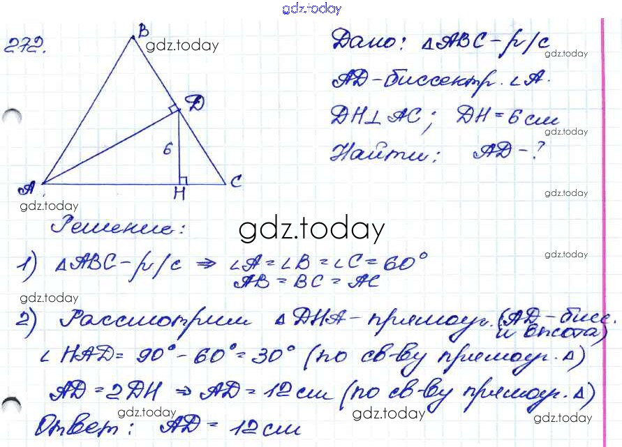 Ответы к Решение. Задачи 272 Учебнику по Геометрии для 7-9 класса Атанасян, Бутузов Просвещение 2010