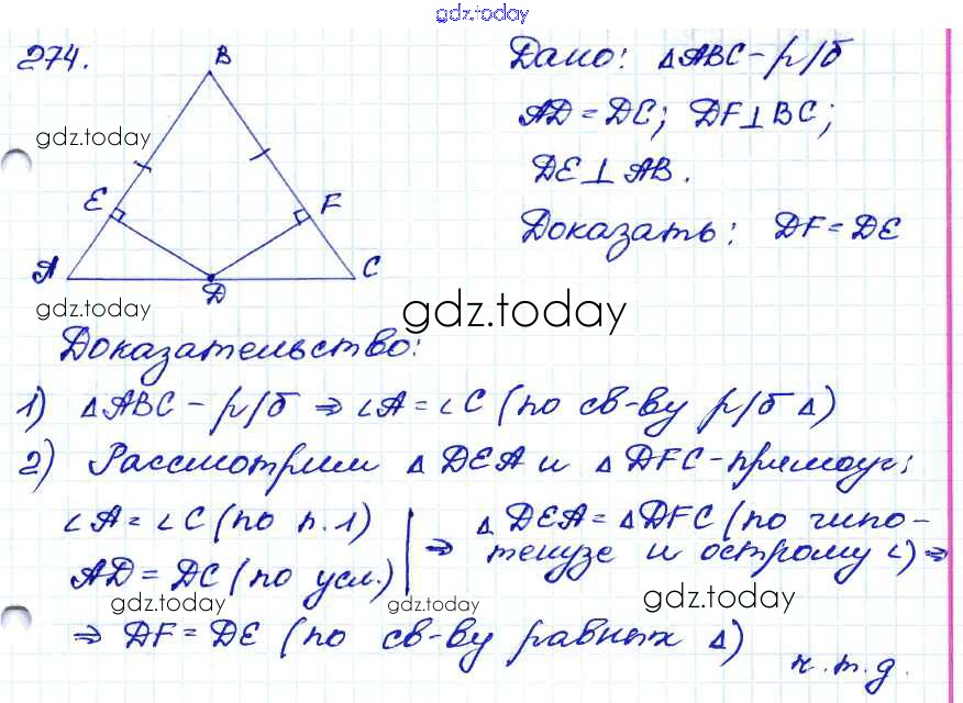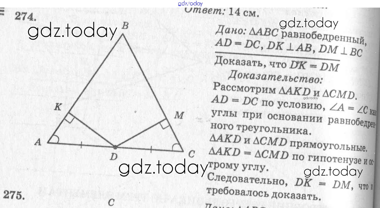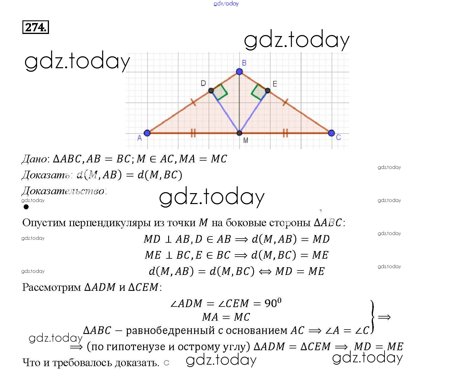 Ответы к Решение. Задачи 274 Учебнику по Геометрии для 7-9 класса Атанасян, Бутузов Просвещение 2010