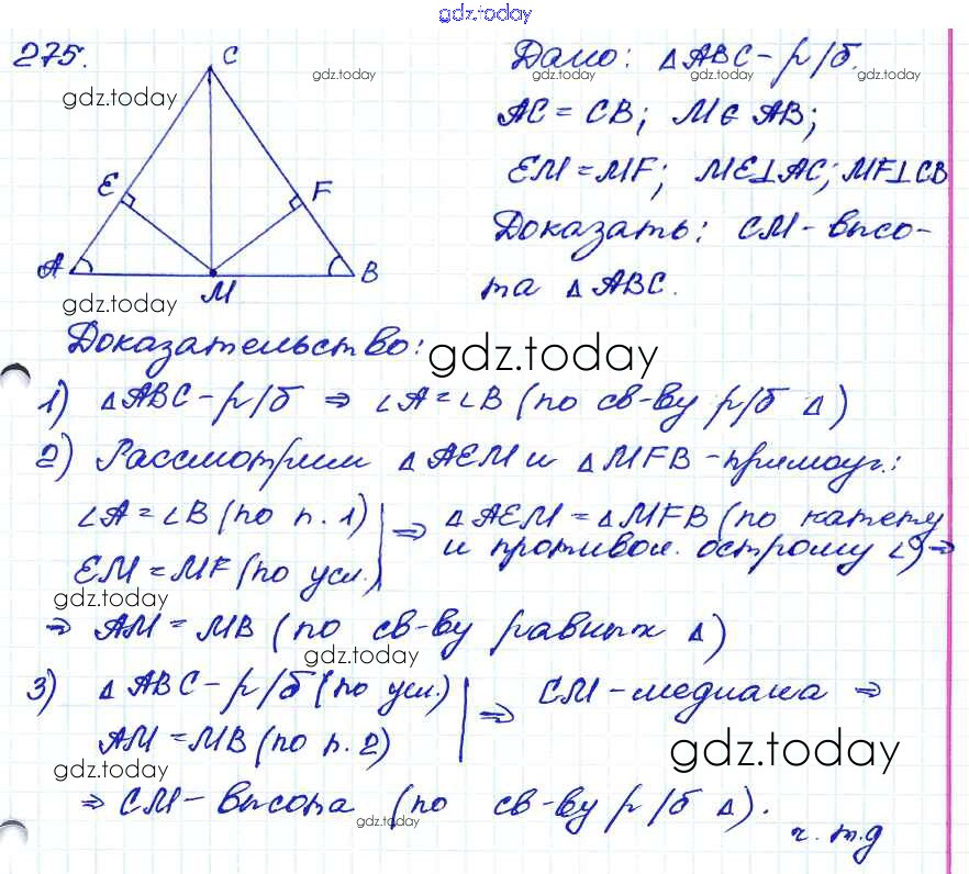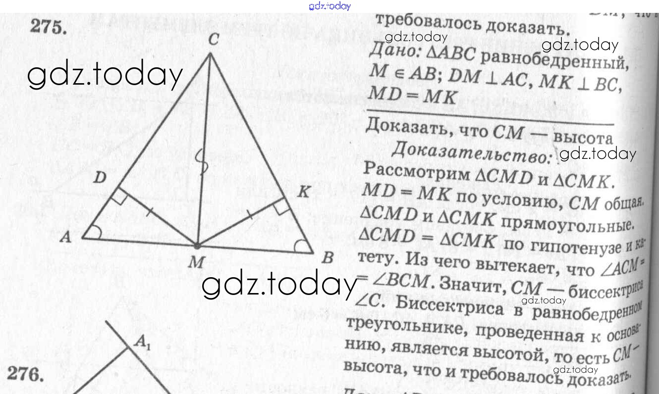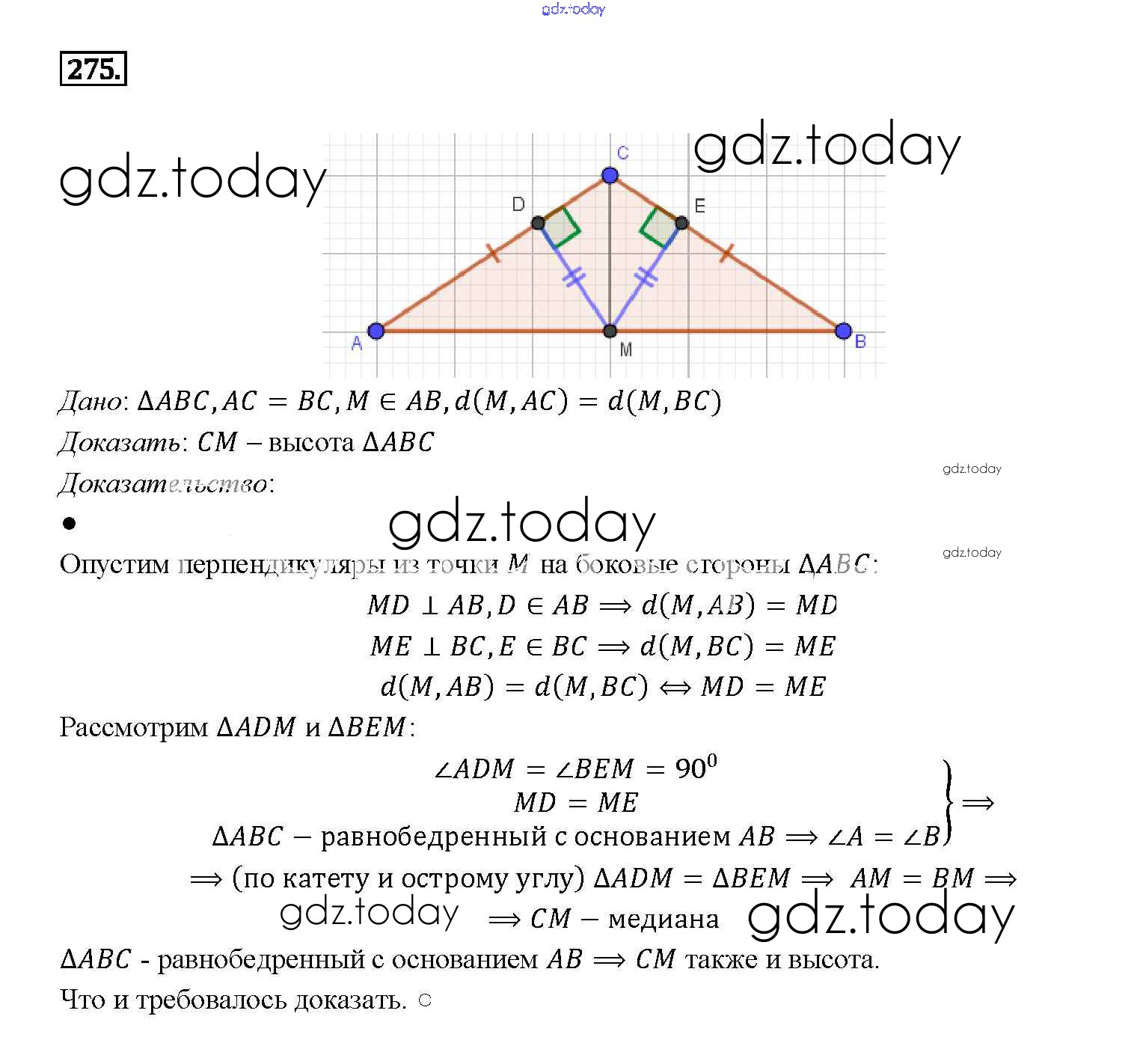 Ответы к Решение. Задачи 275 Учебнику по Геометрии для 7-9 класса Атанасян, Бутузов Просвещение 2010