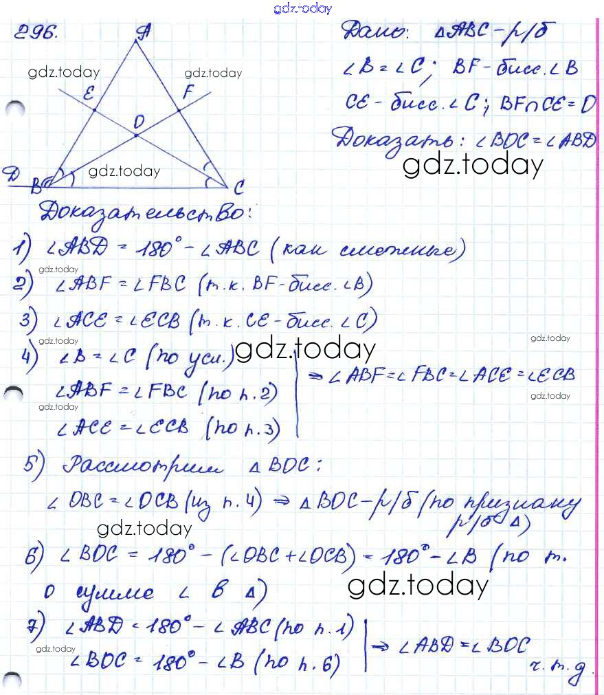 Ответы к Решение. Задачи 296 Учебнику по Геометрии для 7-9 класса Атанасян, Бутузов Просвещение 2010