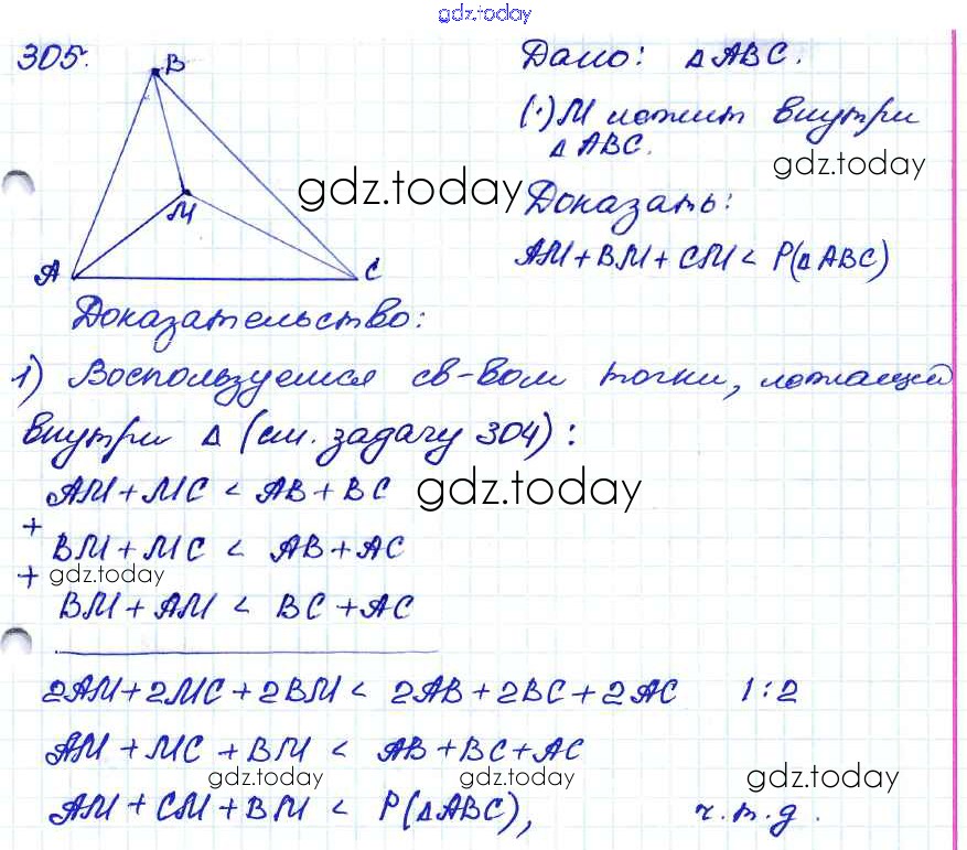 На страницах сайта gdz.today вы найдете учебный и вспомогательный материал, направленный на улучшения знаний школьной программы. ГДЗ - онлайн мир знаний Решение. Задачи 305 Учебнику по Геометрии для 7-9 класса Атанасян, Бутузов Просвещение 2010