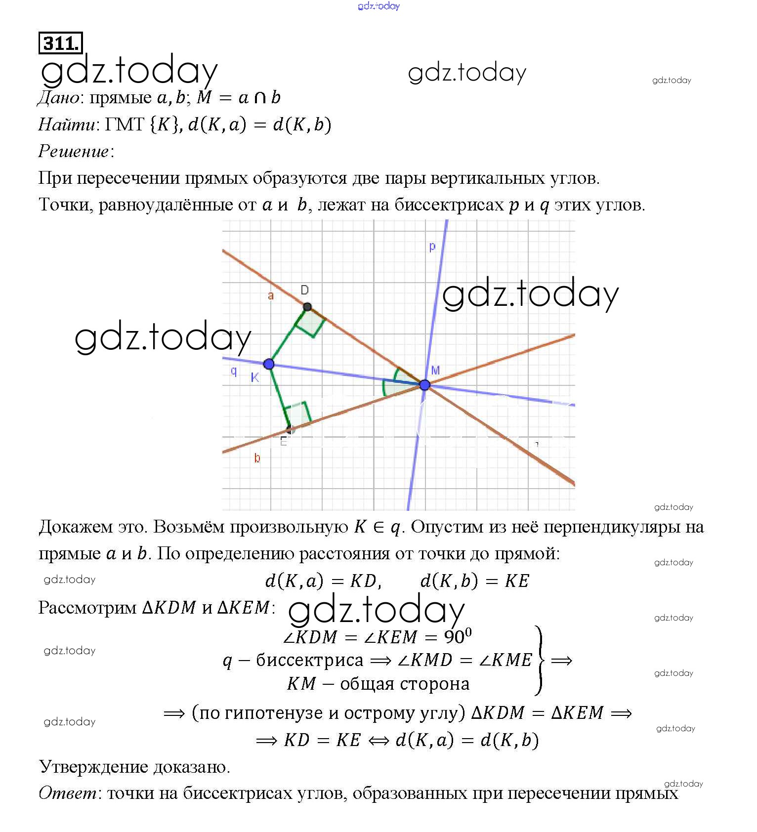 На страницах сайта gdz.today вы найдете учебный и вспомогательный материал, направленный на улучшения знаний школьной программы. ГДЗ - онлайн мир знаний Решение. Задачи 311 Учебнику по Геометрии для 7-9 класса Атанасян, Бутузов Просвещение 2010