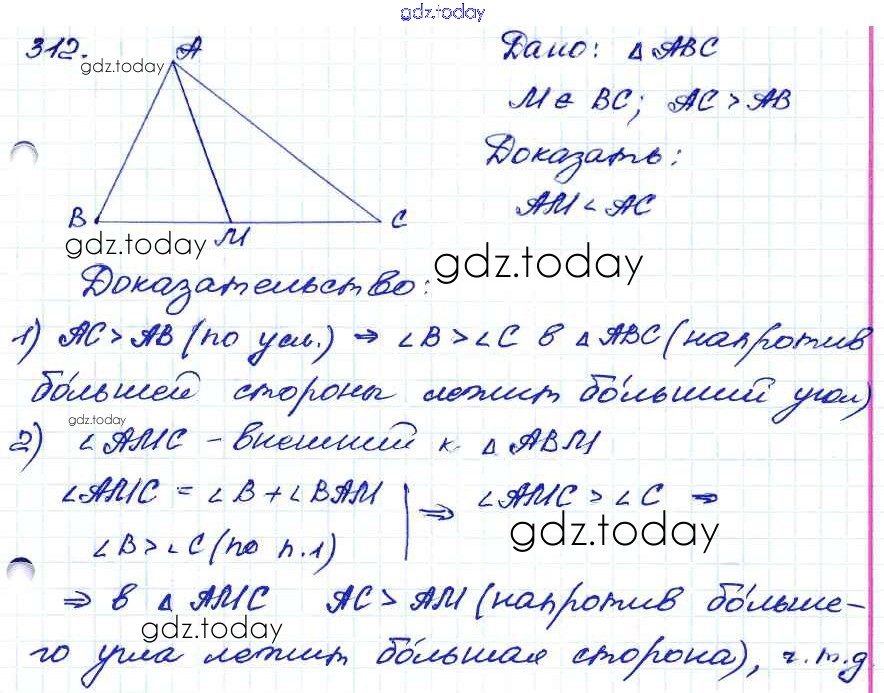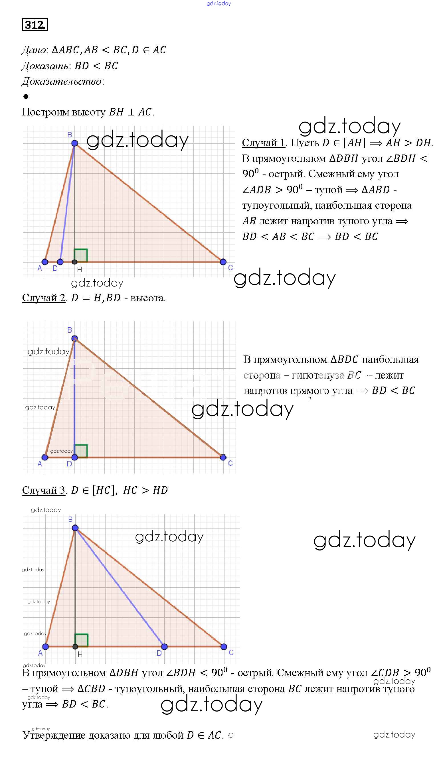 На страницах сайта gdz.today вы найдете учебный и вспомогательный материал, направленный на улучшения знаний школьной программы. ГДЗ - онлайн мир знаний Решение. Задачи 312 Учебнику по Геометрии для 7-9 класса Атанасян, Бутузов Просвещение 2010