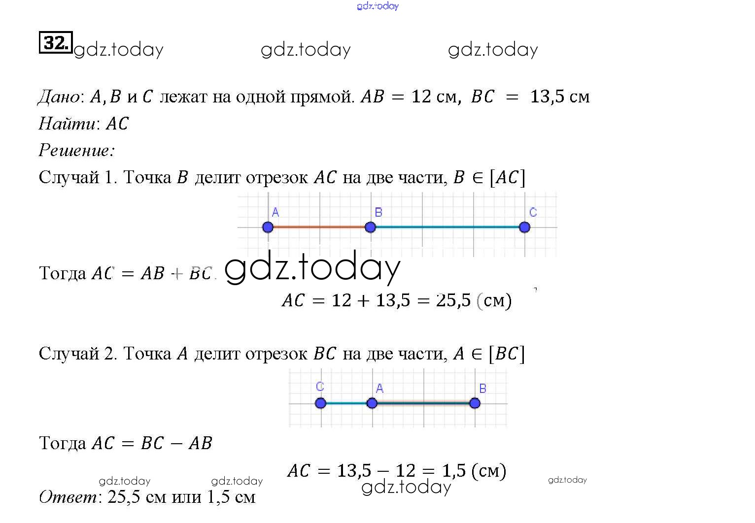 На страницах сайта gdz.today вы найдете учебный и вспомогательный материал, направленный на улучшения знаний школьной программы. ГДЗ - онлайн мир знаний Решение. Задачи 32 Учебнику по Геометрии для 7-9 класса Атанасян, Бутузов Просвещение 2010
