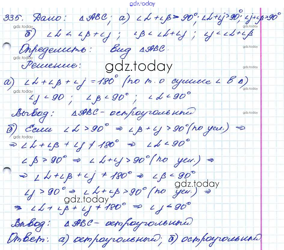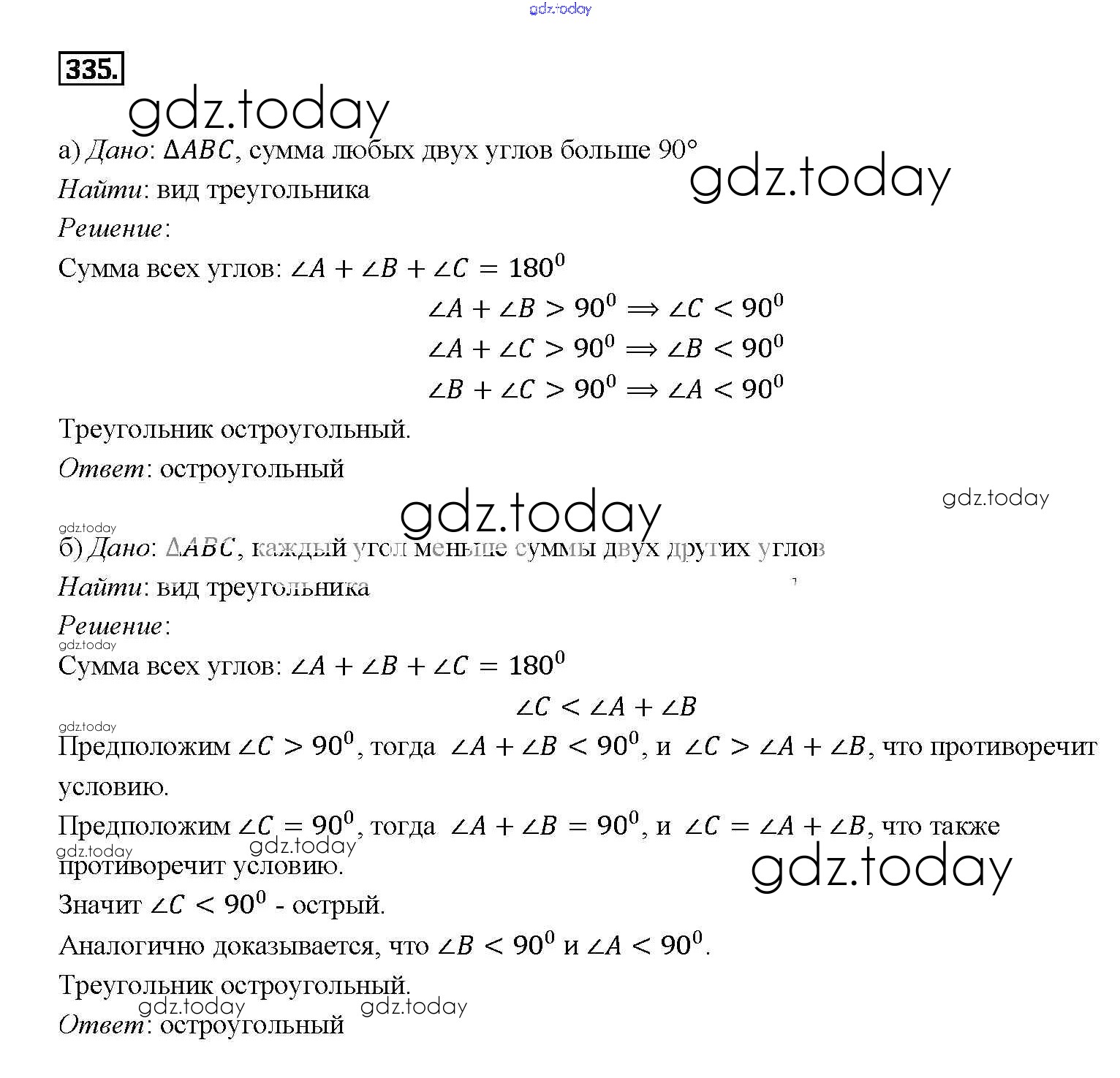 Ответы к Решение. Задачи 335 Учебнику по Геометрии для 7-9 класса Атанасян, Бутузов Просвещение 2010