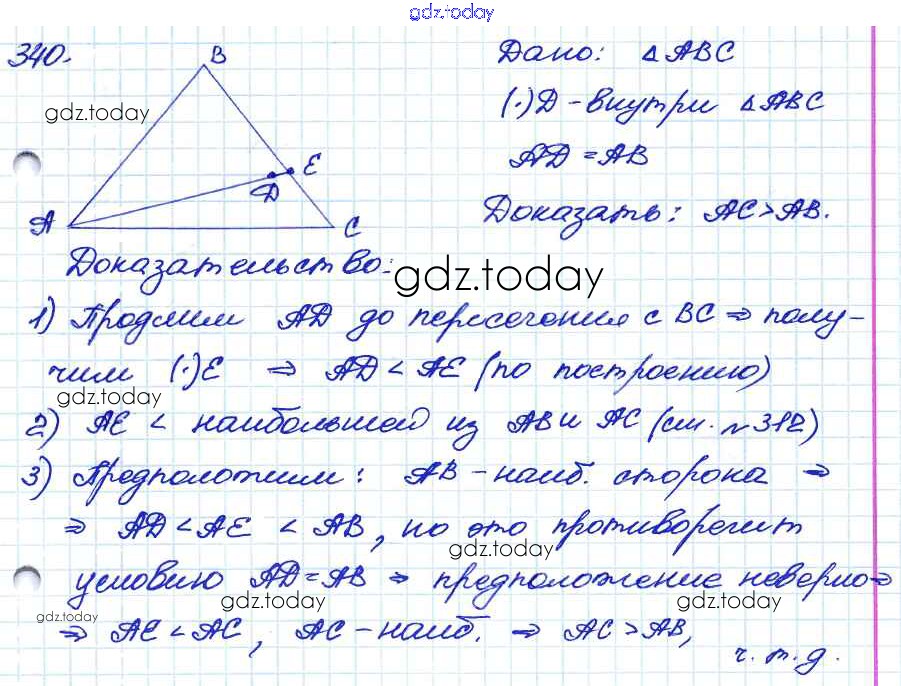 На страницах сайта gdz.today вы найдете учебный и вспомогательный материал, направленный на улучшения знаний школьной программы. ГДЗ - онлайн мир знаний Решение. Задачи 340 Учебнику по Геометрии для 7-9 класса Атанасян, Бутузов Просвещение 2010