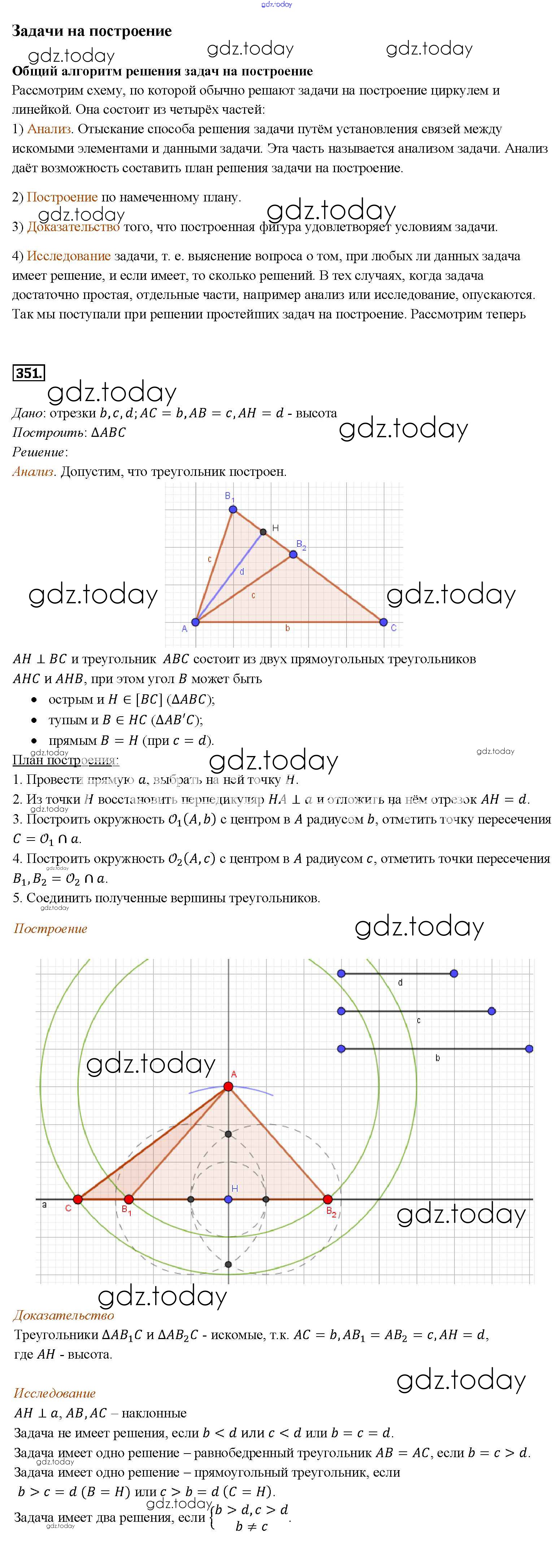 На страницах сайта gdz.today вы найдете учебный и вспомогательный материал, направленный на улучшения знаний школьной программы. ГДЗ - онлайн мир знаний Решение. Задачи 351 Учебнику по Геометрии для 7-9 класса Атанасян, Бутузов Просвещение 2010