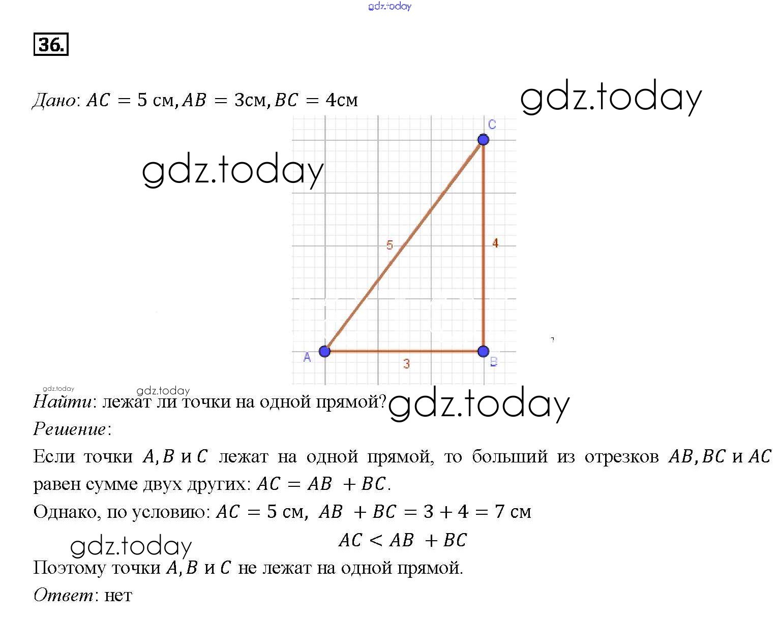 На страницах сайта gdz.today вы найдете учебный и вспомогательный материал, направленный на улучшения знаний школьной программы. ГДЗ - онлайн мир знаний Решение. Задачи 36 Учебнику по Геометрии для 7-9 класса Атанасян, Бутузов Просвещение 2010