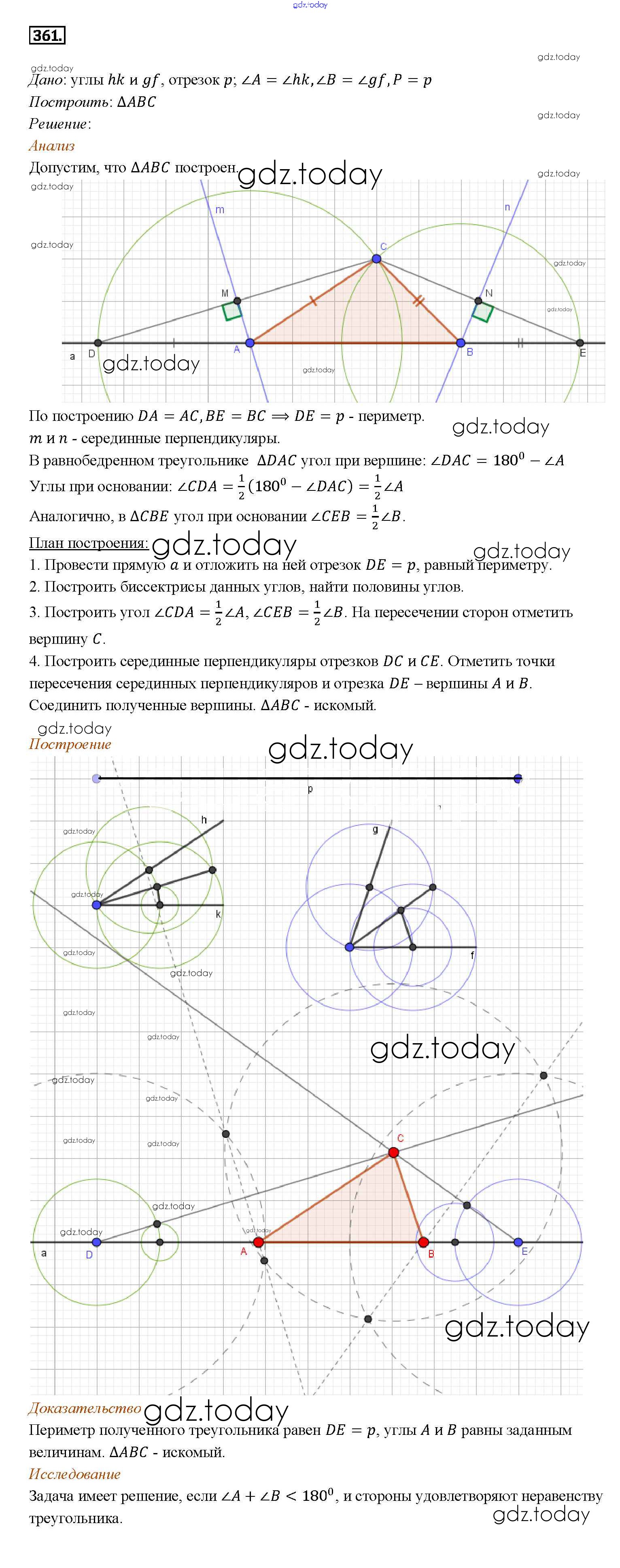 Ответы к Решение. Задачи 361 Учебнику по Геометрии для 7-9 класса Атанасян, Бутузов Просвещение 2010