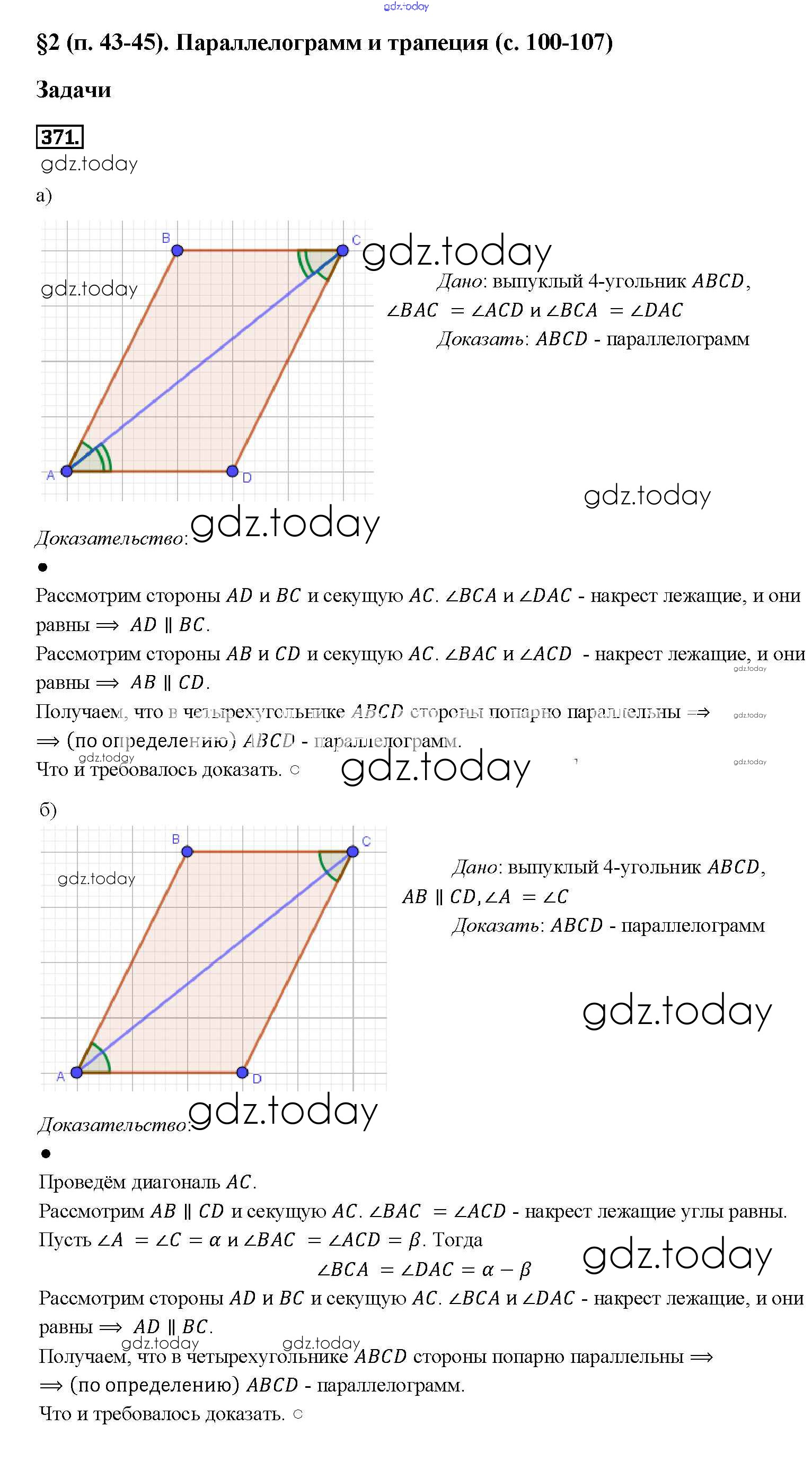 Ответы к Решение. Задачи 371 Учебнику по Геометрии для 7-9 класса Атанасян, Бутузов Просвещение 2010
